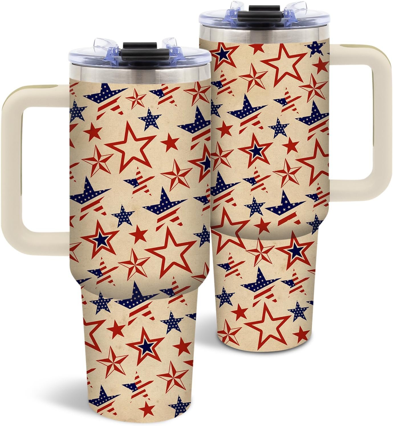 DUUV Birthday Gifts for Women Men, Patriotic Coffee Mug, Retro American Star 40 Oz Tumbler with Handle and Straw for Gym Office Travel, Stainless Stainless Steel Cup for Christmas Thanksgiving, 1PCS