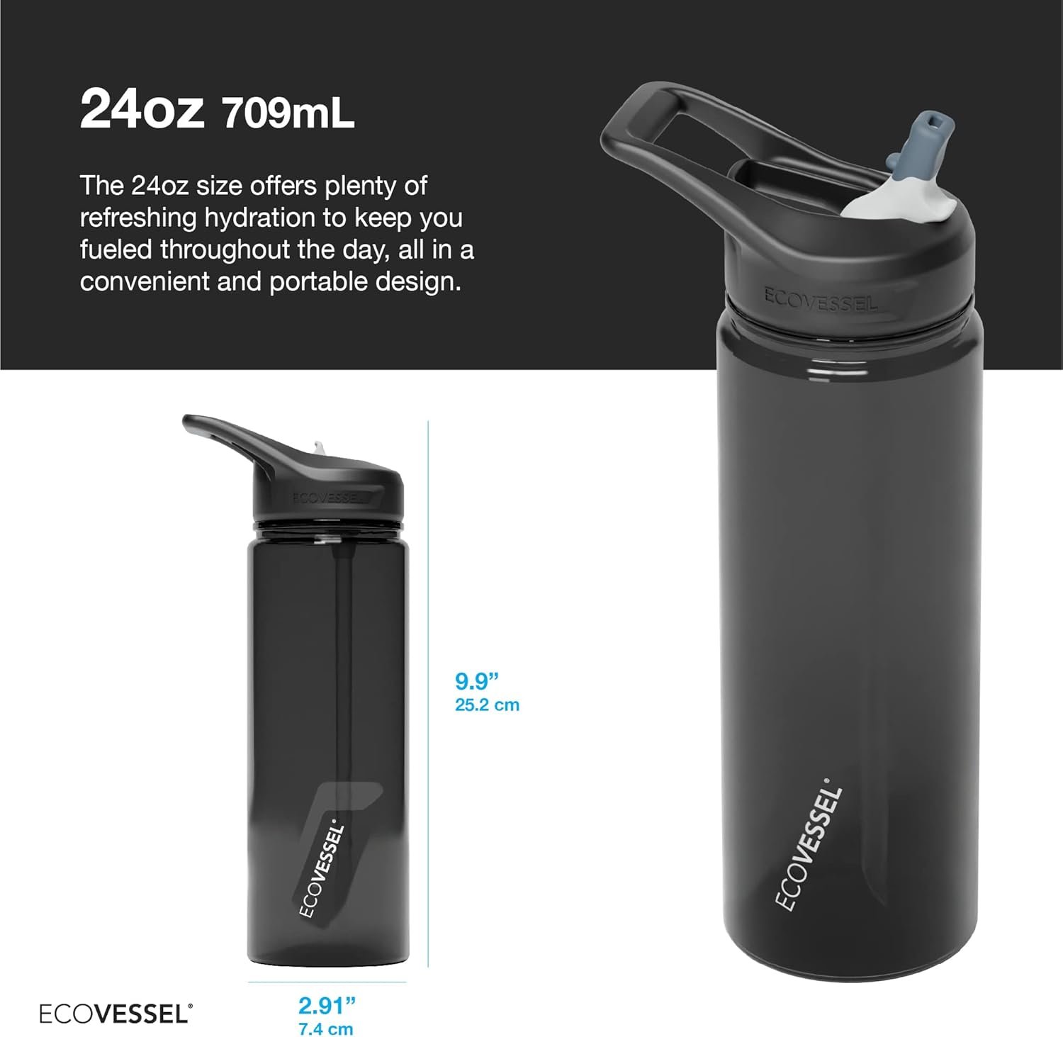 EcoVessel WAVE Tritan Plastic Sports Water Bottle with Flip Top Straw, Leak Proof Lid, and Carry Handle Reusable Water Bottle for Gym 24 oz (Galactic Ocean)