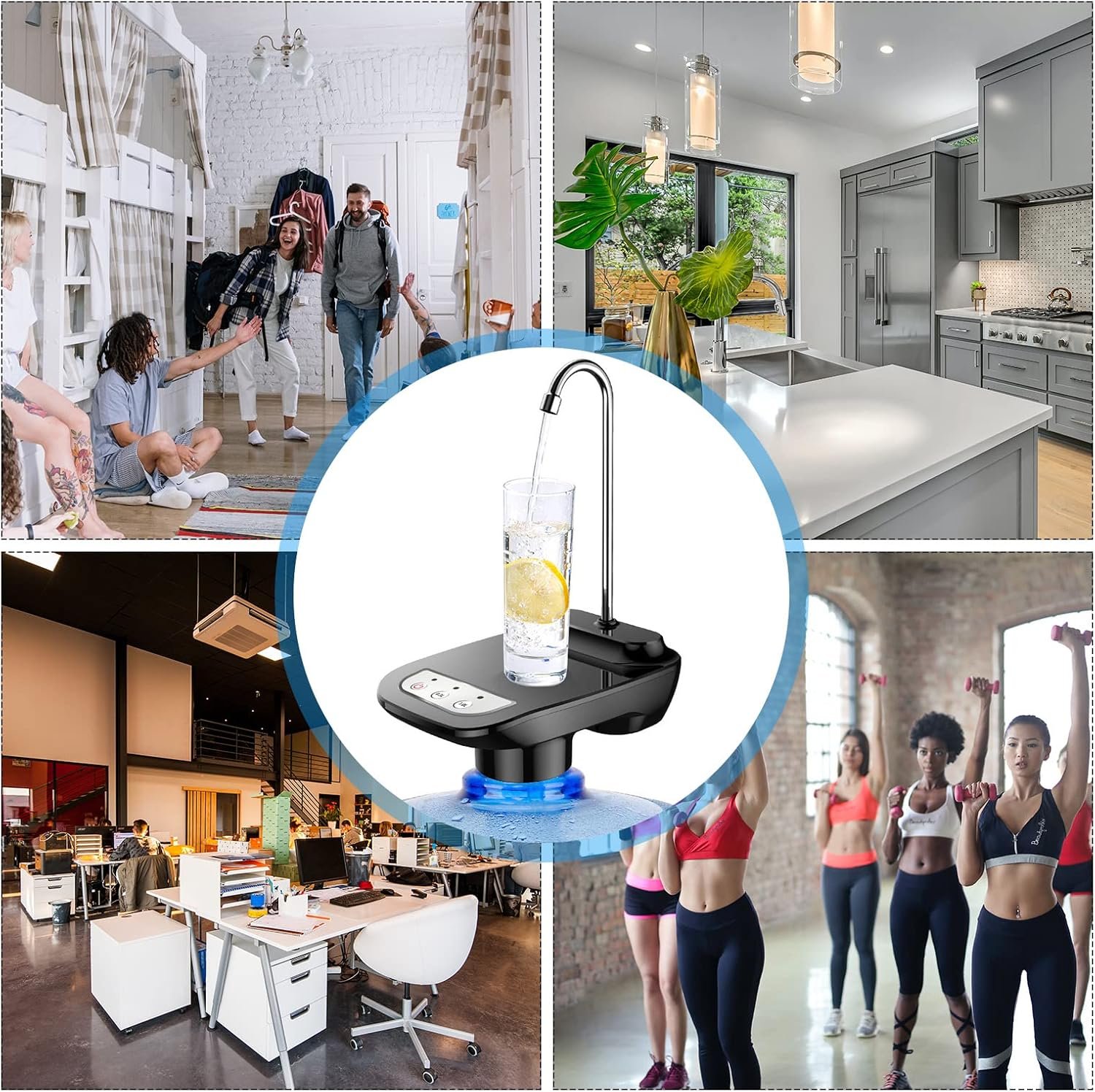Electric Water Dispenser Pump | Low Noise Tech – Auto USB Charging & Leak-Proof Portable for 3-5Gallon Jugs | Home, Office, Kitchen, Travel & Camping (Black)