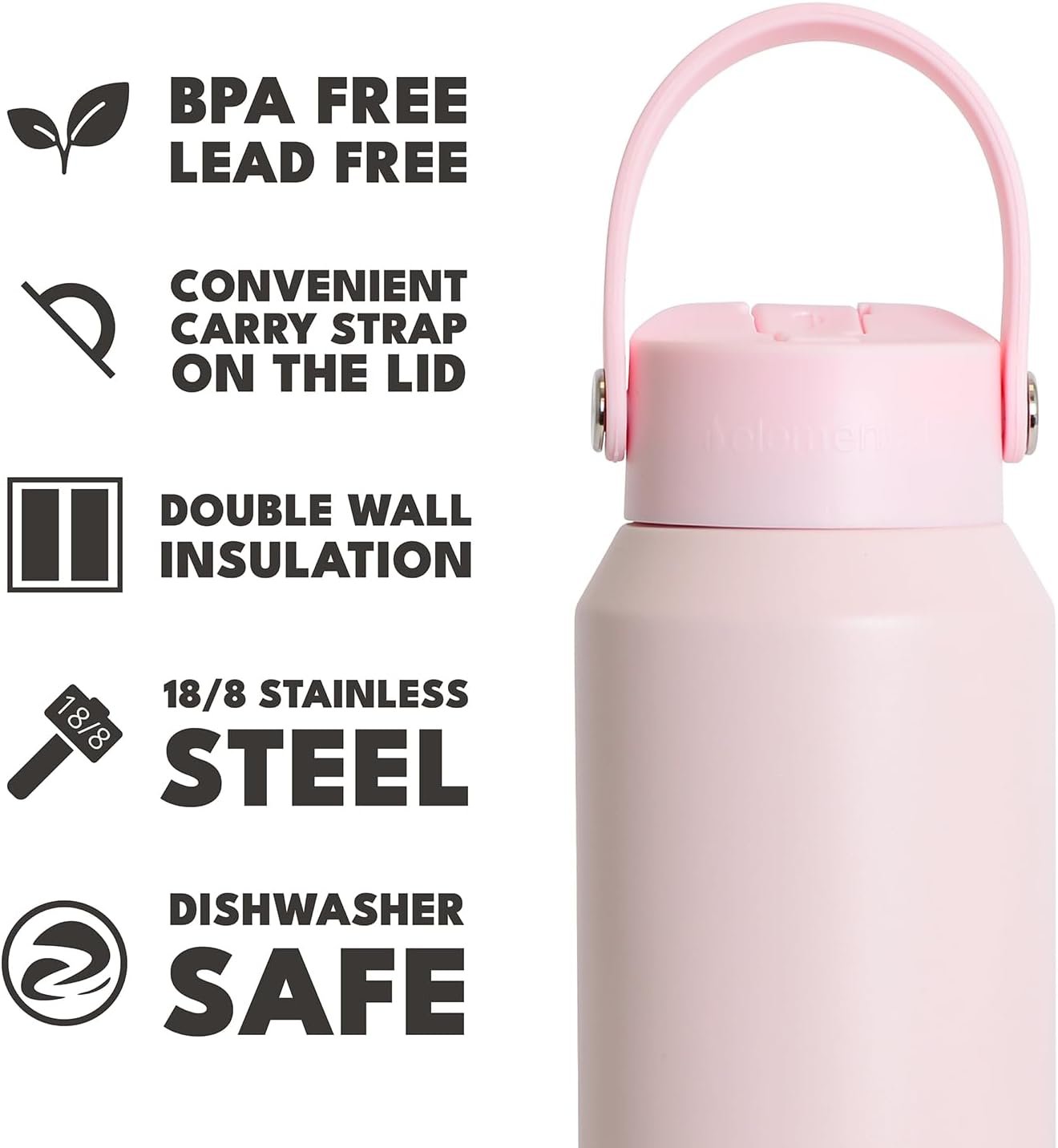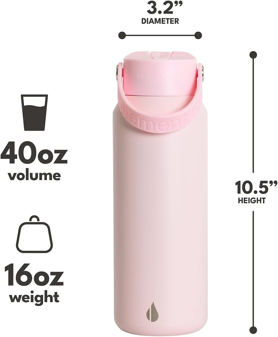 𝗪𝗶𝗱𝗲 𝗠𝗼𝘂𝘁𝗵 𝘄𝗶𝘁𝗵 𝗡𝗼 𝗢𝗱𝗼𝗿 𝗼𝗿 𝗧𝗮𝘀𝘁𝗲: Enjoy the purity of your drinks with the Elemental Core water bottle’s wide-mouth opening. It’s designed to eliminate metallic tastes or odors often associated with cheaper bottles, ensuring that your beverages taste fresh every time. Ideal for those who value a clean taste, this feature makes it perfect for reusable water bottles and enhances your drinking experience