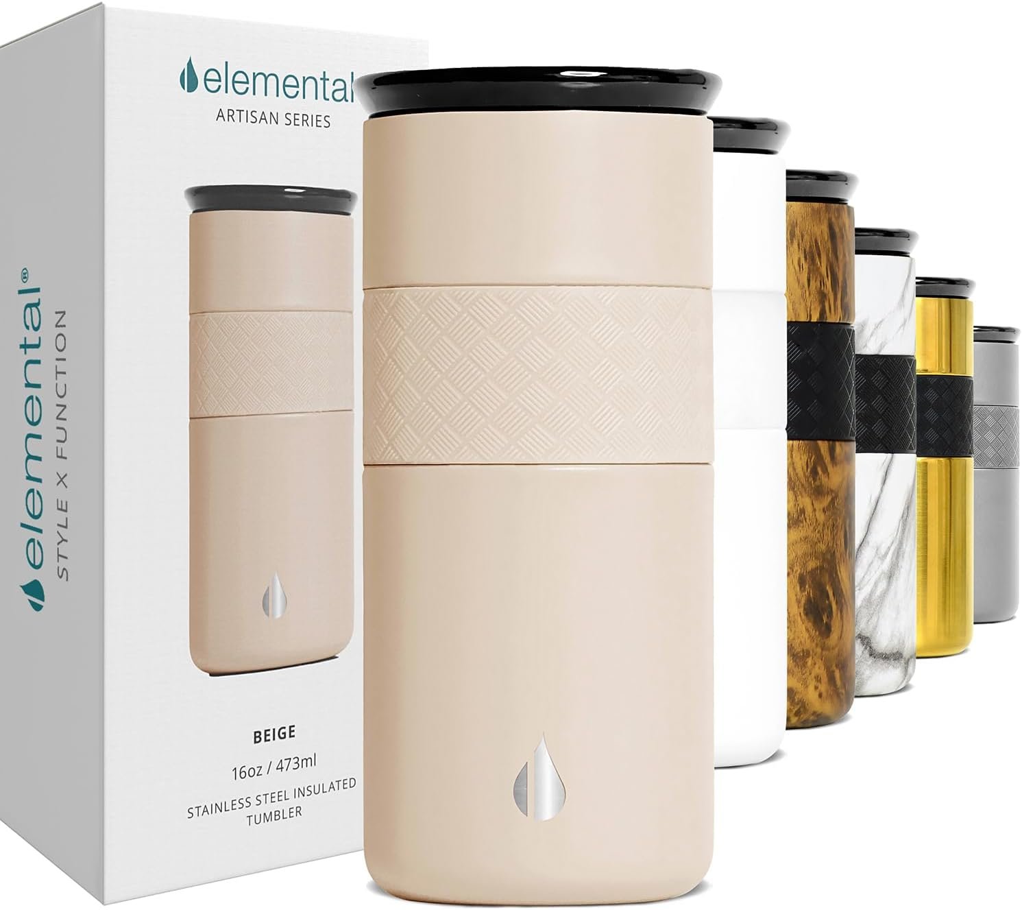Elemental Artisan Insulated Tumbler, Triple Wall Coffee Travel Mug, Reusable Stainless Steel Coffee Tumbler with Ceramic Lid, Thermal Coffee Cups for Hot (6 Hrs) & Cold (18 Hrs), 16oz – Beige