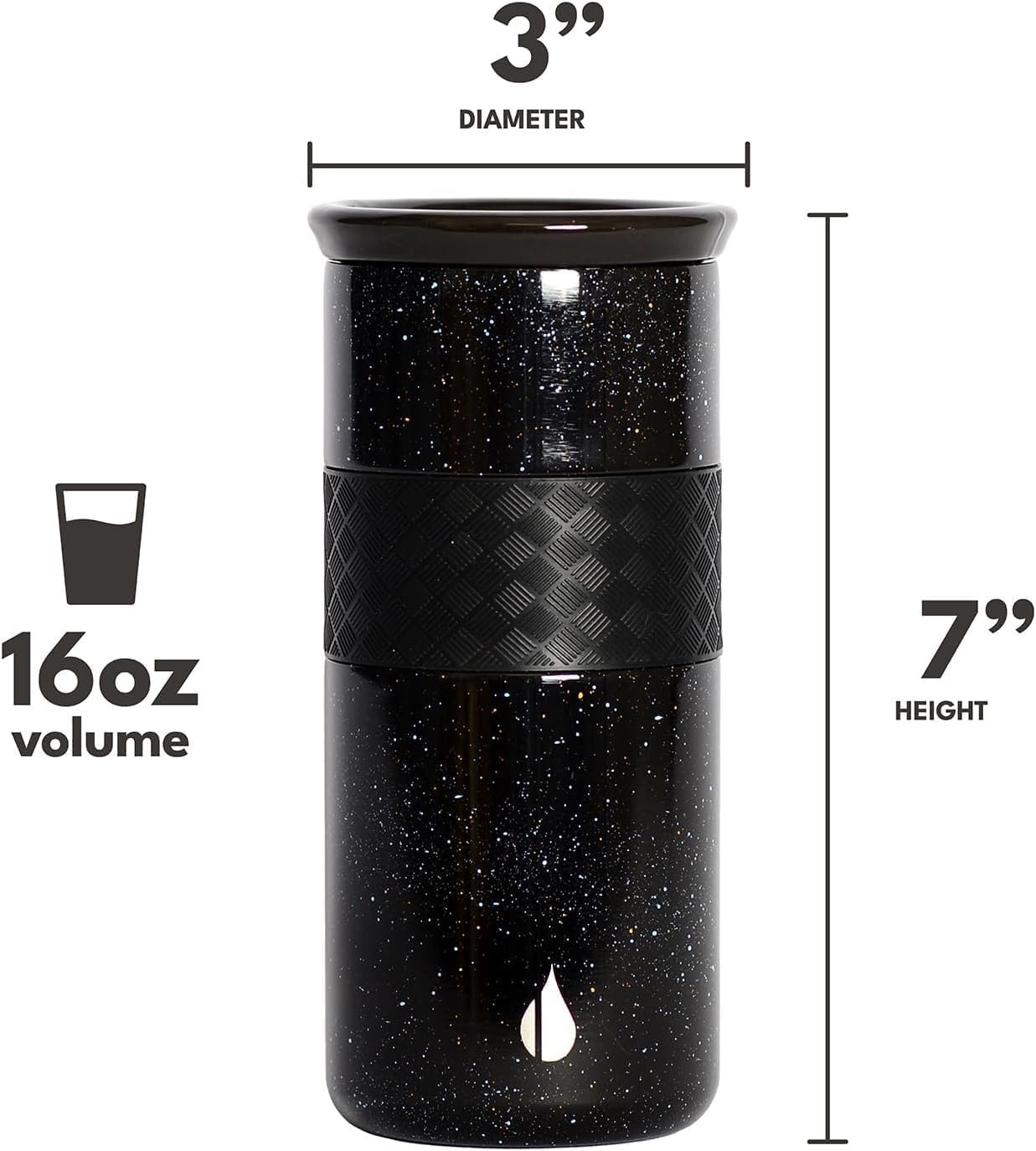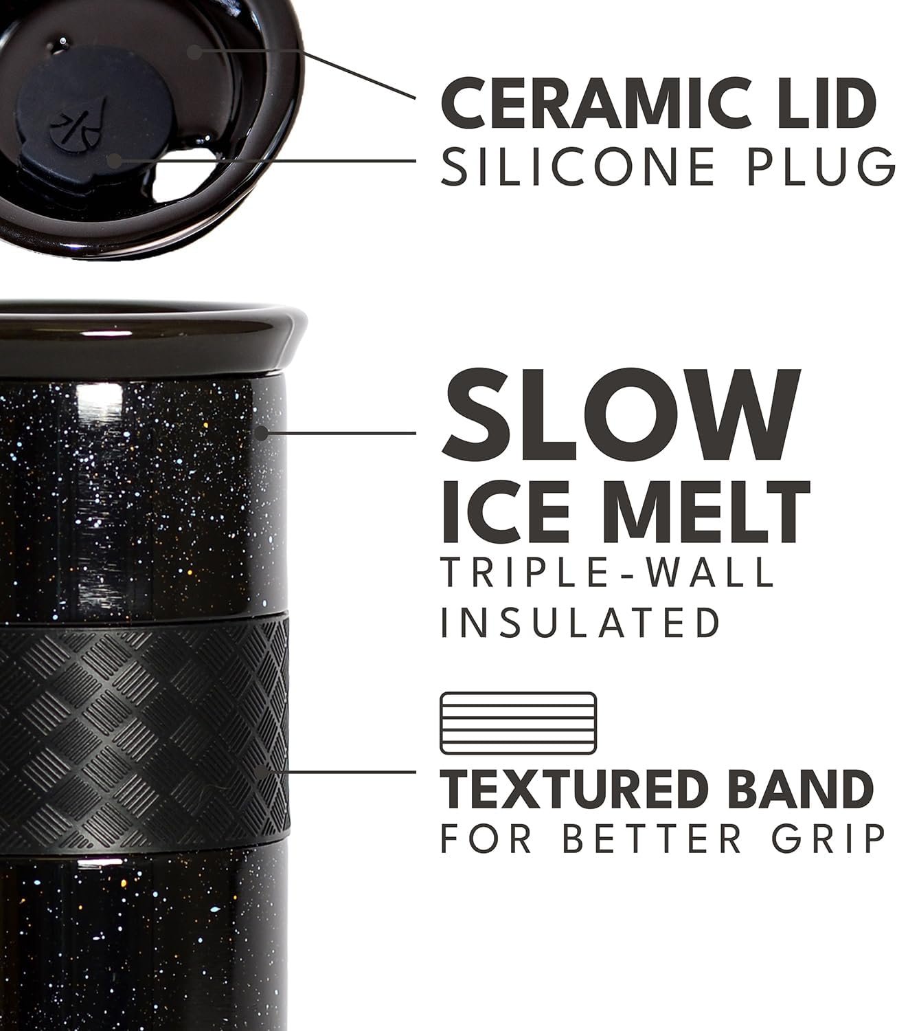 Elemental Artisan Insulated Tumbler, Triple Wall Coffee Travel Mug, Reusable Stainless Steel Coffee Tumbler with Ceramic Lid, Thermal Coffee Cups for Hot (6 Hrs) & Cold (18 Hrs), 16oz – Black Speckle