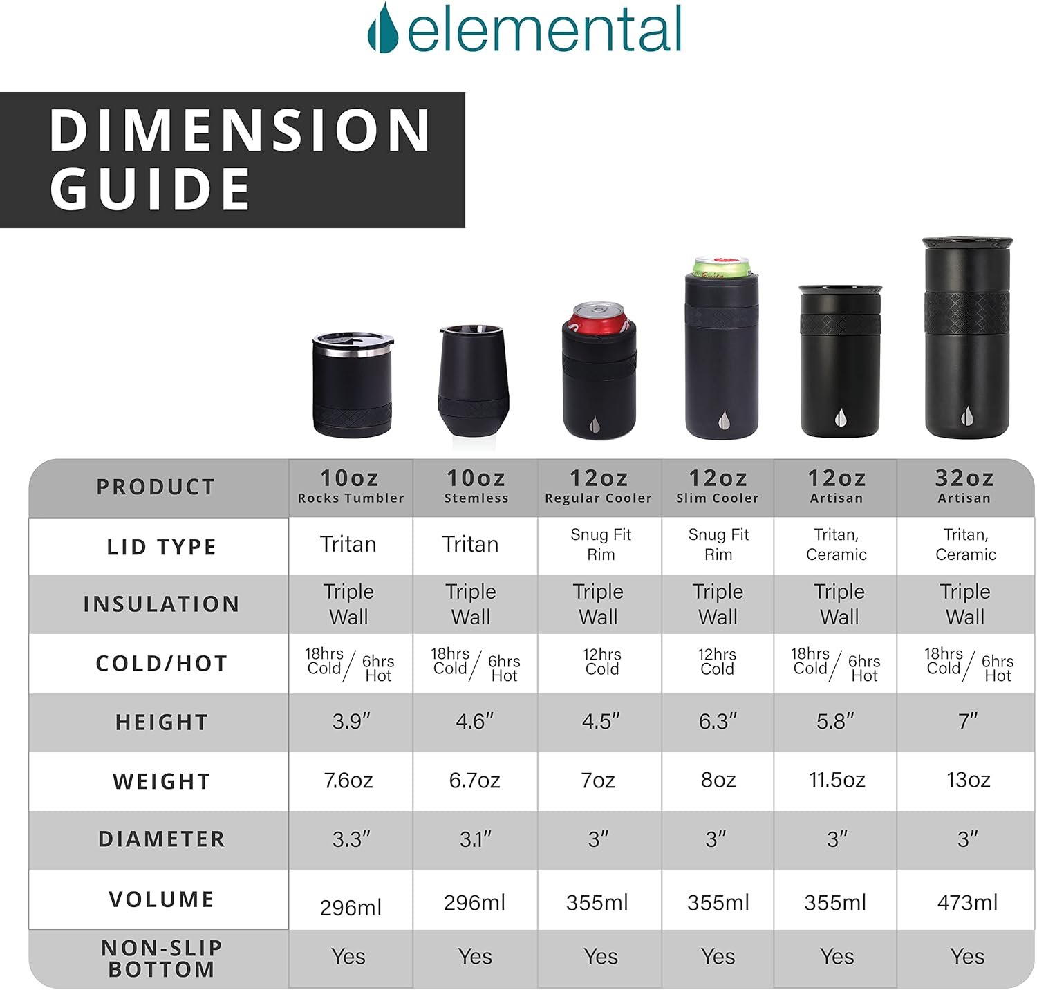𝗣𝗿𝗼𝘃𝗶𝗱𝗲𝘀 𝗦𝘁𝗮𝗯𝗹𝗲 𝗮𝗻𝗱 𝗖𝗼𝗺𝗳𝗼𝗿𝘁𝗮𝗯𝗹𝗲 𝗚𝗿𝗶𝗽: Our travel tumblers have a 3in diameter, textured band, and non-slip silicone bottom for easy grip. The No Sweat Design prevents condensation, keeping your hands dry when holding an ice-cold drink on a hot day.