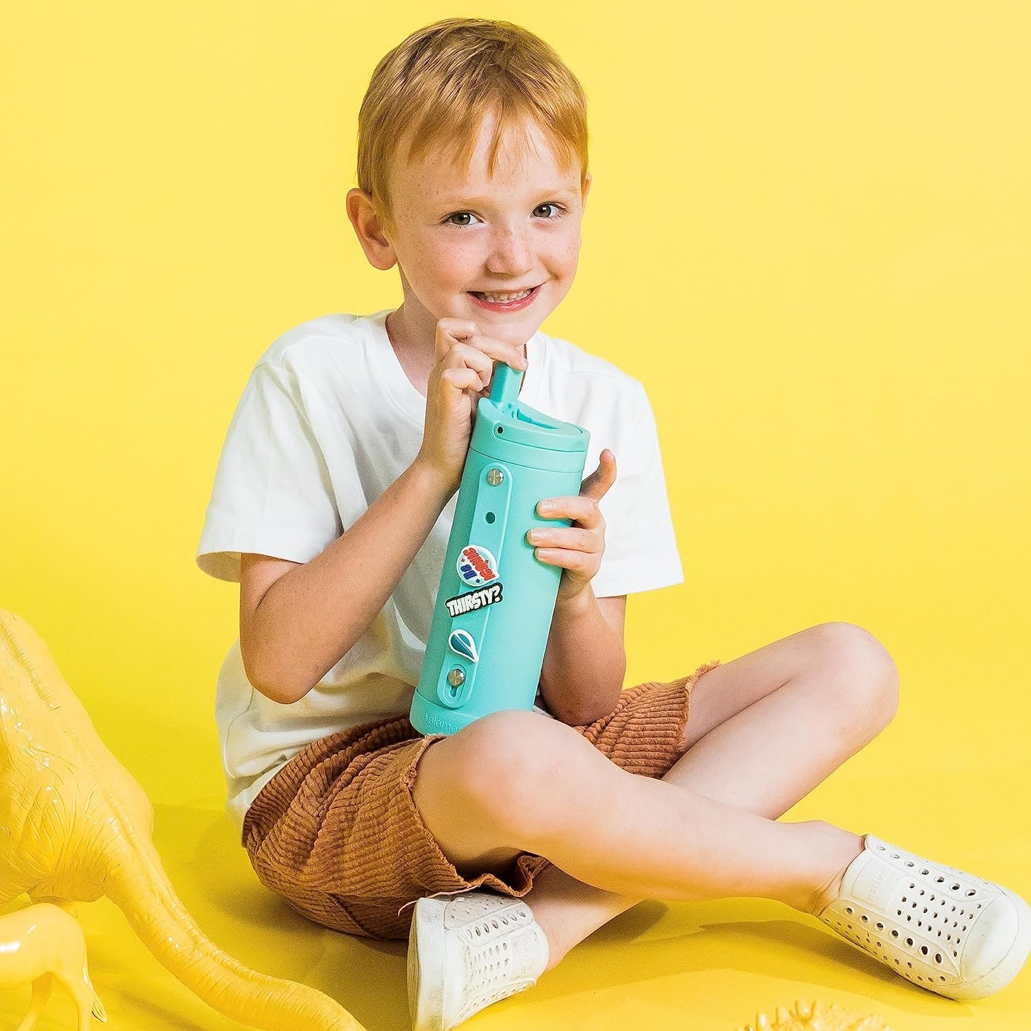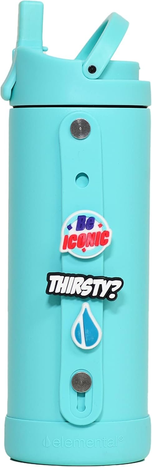 Elemental Iconic Kids Water Bottle with Straw Lid & Charms Strap, Leak-Proof When Closed, Triple Insulated Stainless Steel Reusable Water Bottle – 14oz, Robin’s Egg