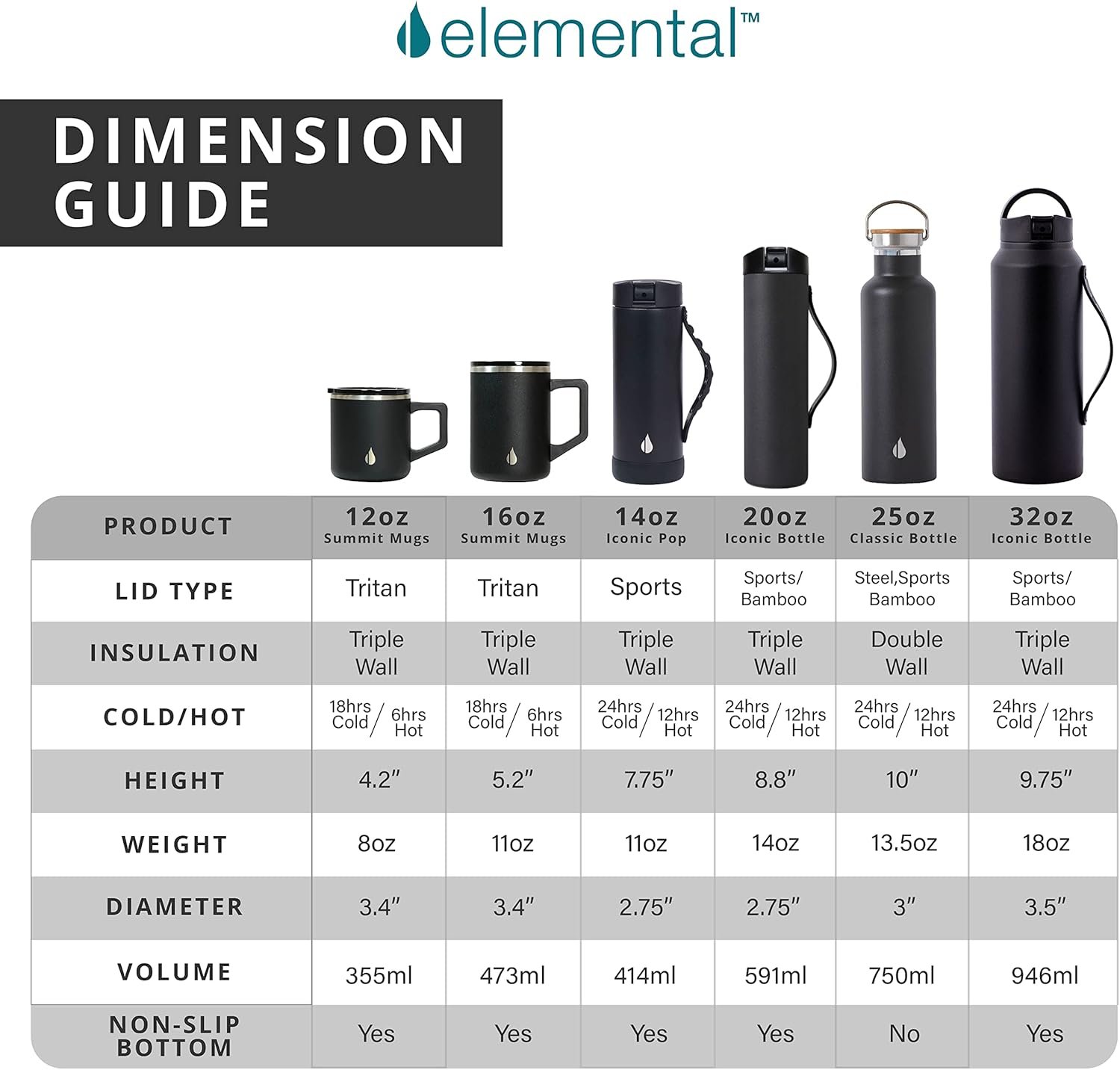 𝗔𝗱𝘃𝗲𝗻𝘁𝘂𝗿𝗲-𝗿𝗲𝗮𝗱𝘆 𝗦𝘁𝗮𝗶𝗻𝗹𝗲𝘀𝘀 𝗦𝘁𝗲𝗲𝗹 𝗖𝗮𝗺𝗽 𝗠𝘂𝗴𝘀 𝗪𝗶𝘁𝗵 𝗟𝗶𝗱: This insulated travel mug is lightweight and ideal for camping or hiking as a travel coffee and tea mug to go. Elemental’s portable coffee tumbler is easy to hold and very travel-friendly.