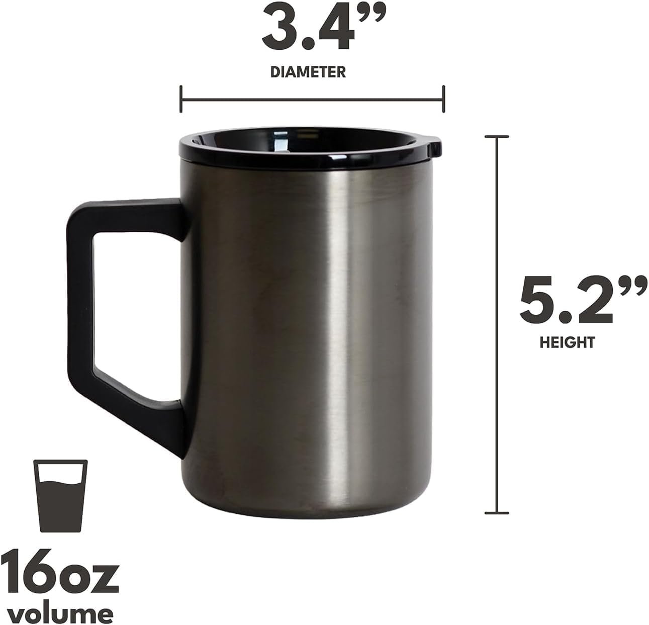 Elemental Insulated Coffee Mug – Triple-Wall Stainless Steel Summit Travel Cup for Hot and Cold Drinks – Thermal Coffee Mug with Lid and Handle for Camping, Office & Travel 16oz – Gunmetal