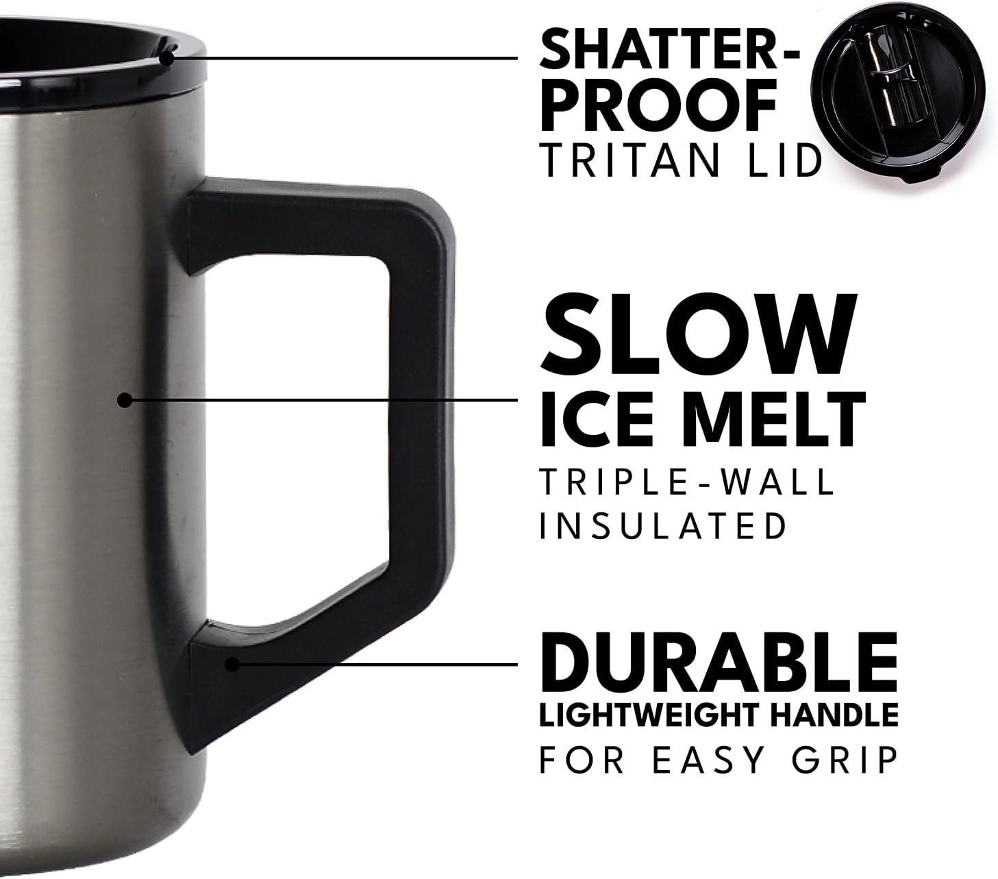 𝗧𝗿𝗶𝘁𝗮𝗻 𝗦𝗵𝗮𝘁𝘁𝗲𝗿 𝗣𝗿𝗼𝗼𝗳 𝗦𝗶𝗽 𝗟𝗶𝗱: The lid is designed to be easy to drink from while keeping your favorite drinks at the perfect temperature. It’s important to note that while the slider lid is closed, it is not leak proof and may not prevent spills.