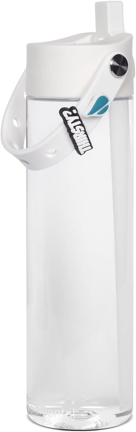 Elemental Splash Water Bottle with Straw – BPA-Free Tritan Plastic Reusable Water Bottle with Charm Strap – Ideal for Travel, Gym and Sports – Leak Proof when Spout is Closed – 26oz – Clear