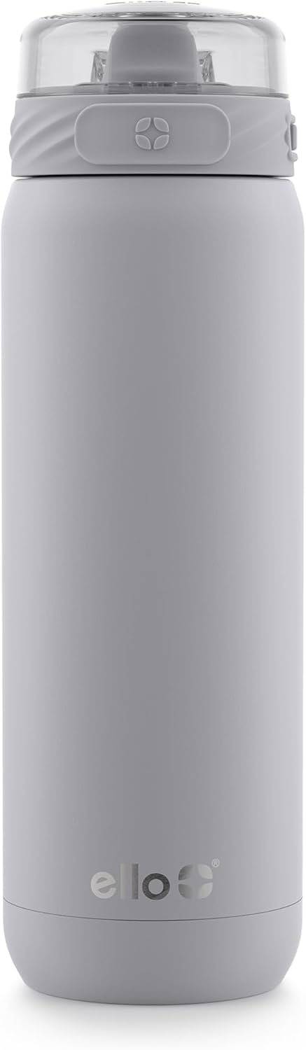 Ello Cooper 18oz Kids Stainless Steel Water Bottle with Straw and Carry Handle, Double Walled and Vacuum Insulated Metal, Leak Proof Locking Lid with Soft Silicone Spout, Reusable, BPA Free, Gray