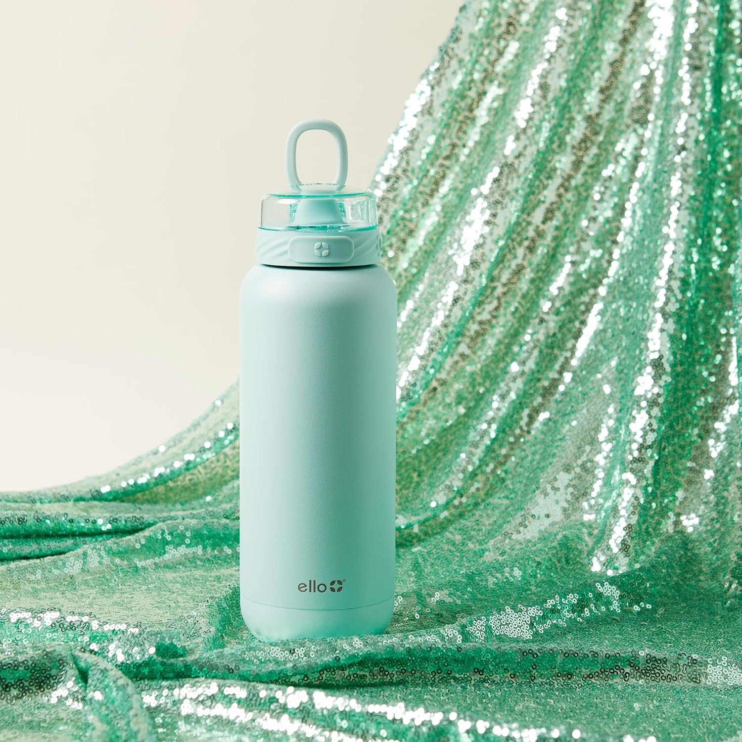 Ello Cooper 32oz Stainless Steel Water Bottle with Straw and Carry Handle, Double Walled and Vacuum Insulated Metal, Leak Proof Locking Lid with Soft Silicone Spout, Reusable, BPA Free, Yucca