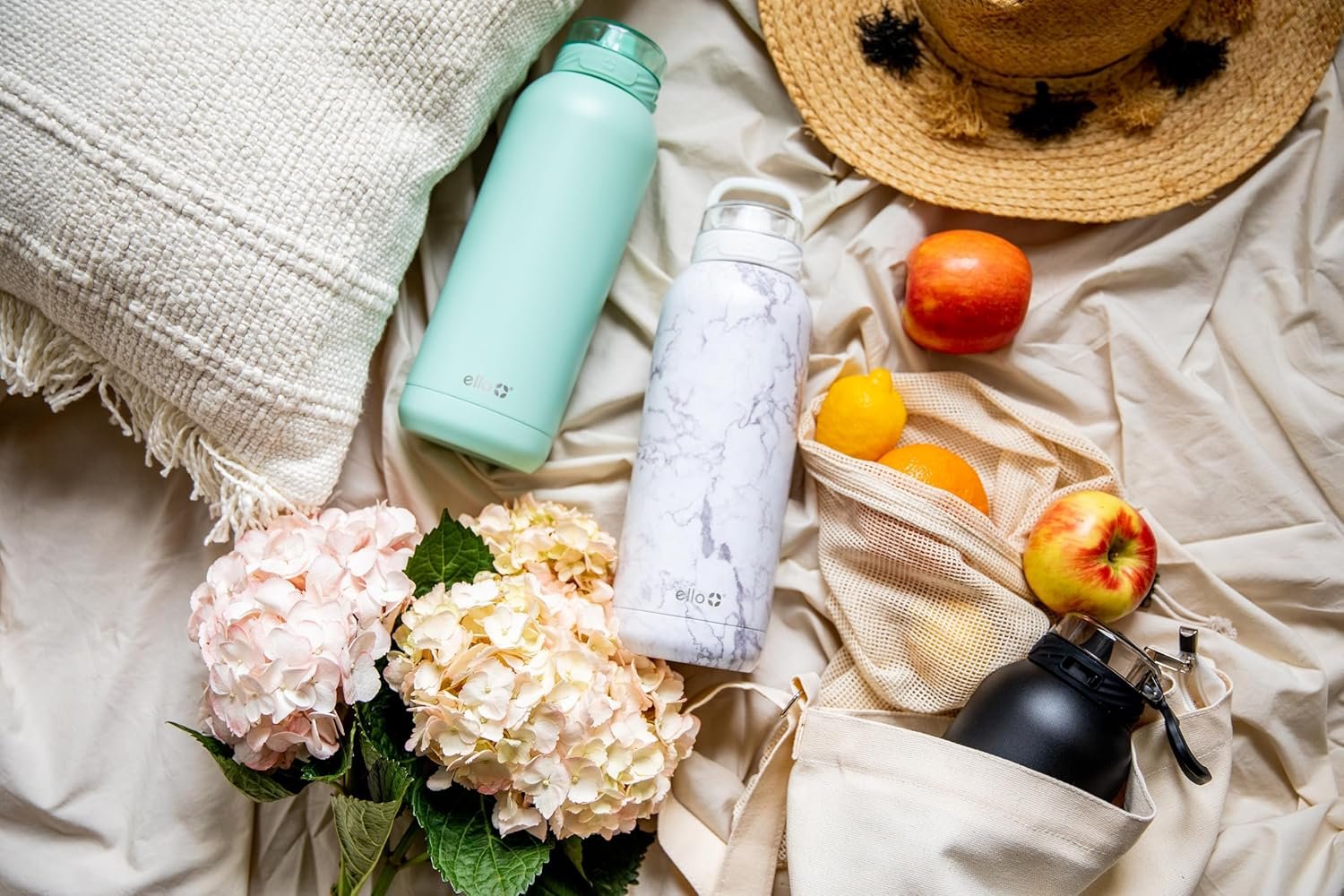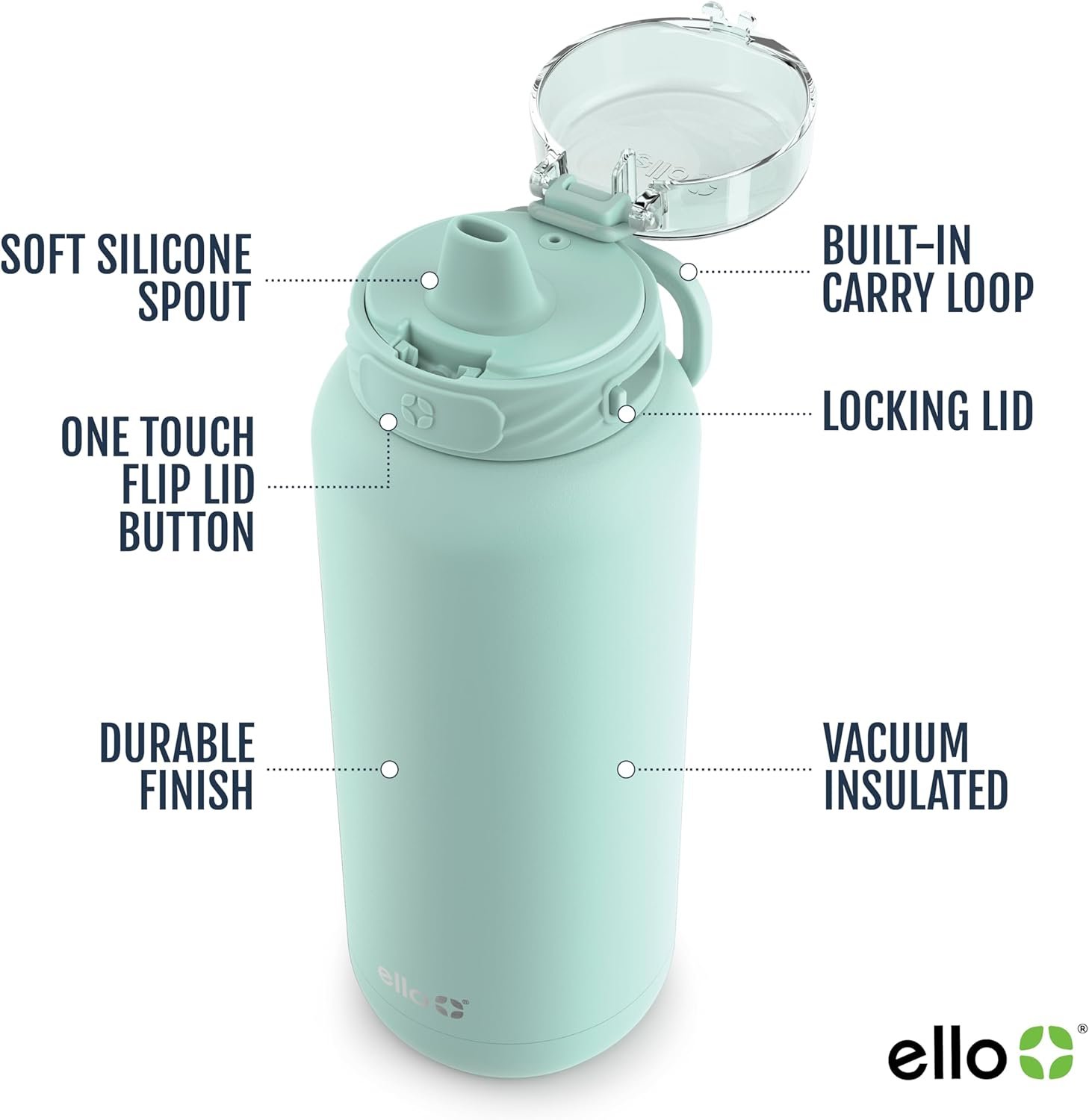 Ello Cooper 40oz Stainless Steel Water Bottle with Straw and Carry Handle, Double Walled and Vacuum Insulated Metal, Leak Proof Locking Lid with Soft Silicone Spout, Reusable, BPA Free, Yucca