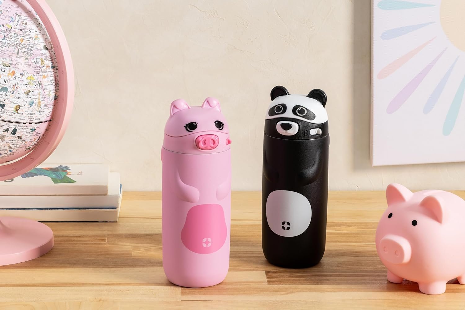 Ello Ellies 12oz Vacuum Insulated Stainless Steel Kids Water Bottle with Straw and Built-in Carrying Handle and Leak-Proof Locking Lid for School Backpack, Lunchbox and Outdoor Sports, Pig