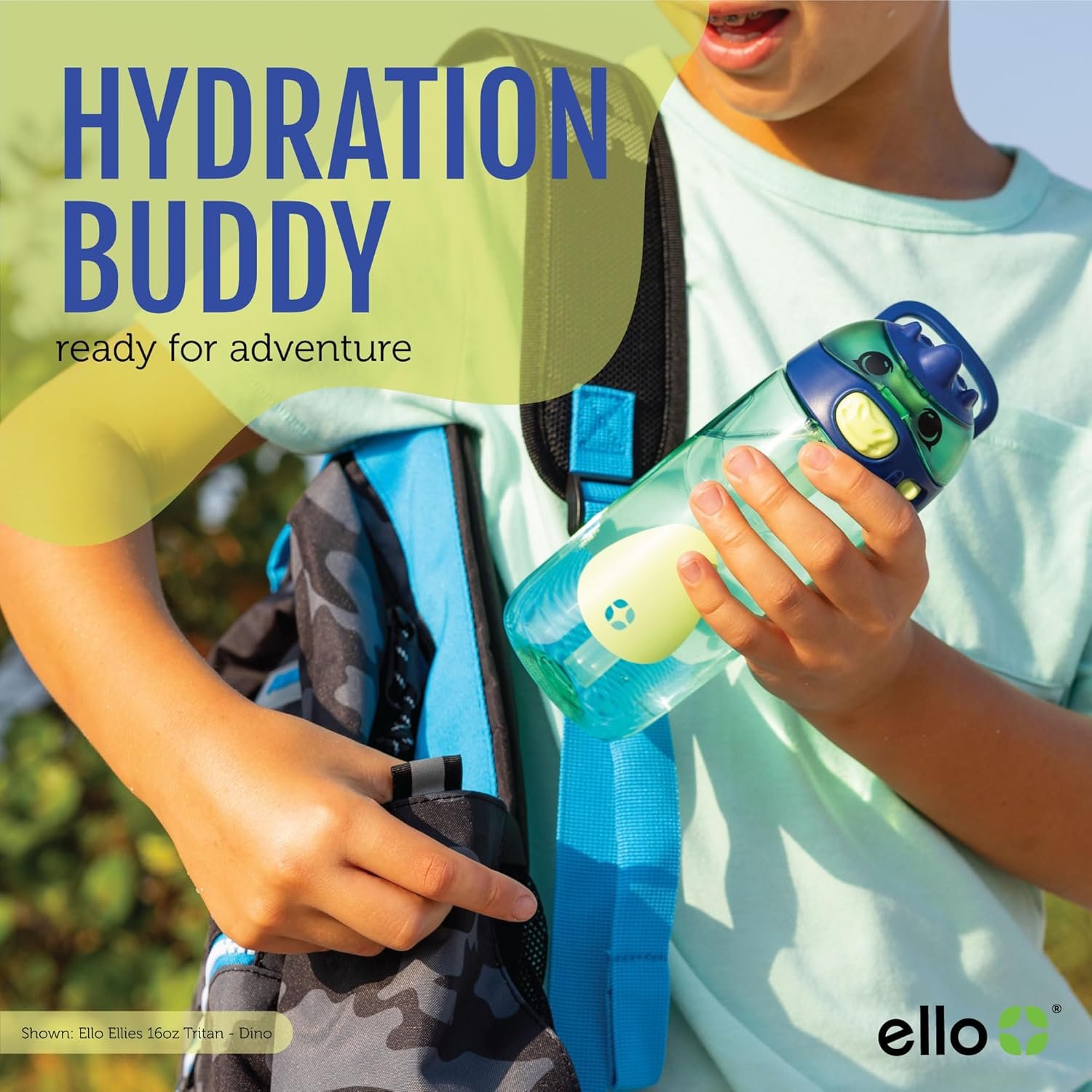 The Ello Ellies 16oz Plastic Kids Water Bottle – the perfect hydration buddy for your little adventurers! It’s made from durable Eastman Tritan plastic which won’t crack, stain, or smell. Ellies features a leak-proof locking lid design that hides away the straw when you’re on the go but easy to open with one hand with a touch of a button. FDA food grade silicone straw minimizes spills and stays clean and concealed when not in use. A built-in carry loop makes it super easy to travel with and the bottle is cup holder friendly and perfect for school, sports, and recreation. All parts are BPA-free and top rack dishwasher safe. And let’s not forget the fun factor! But that’s not all – our bottles come in an array of adorable animal shapes, ensuring your kids not only stay hydrated but also have fun with their water bottle. Explore our collection today and let the adventures begin! Not intended for hot beverages.