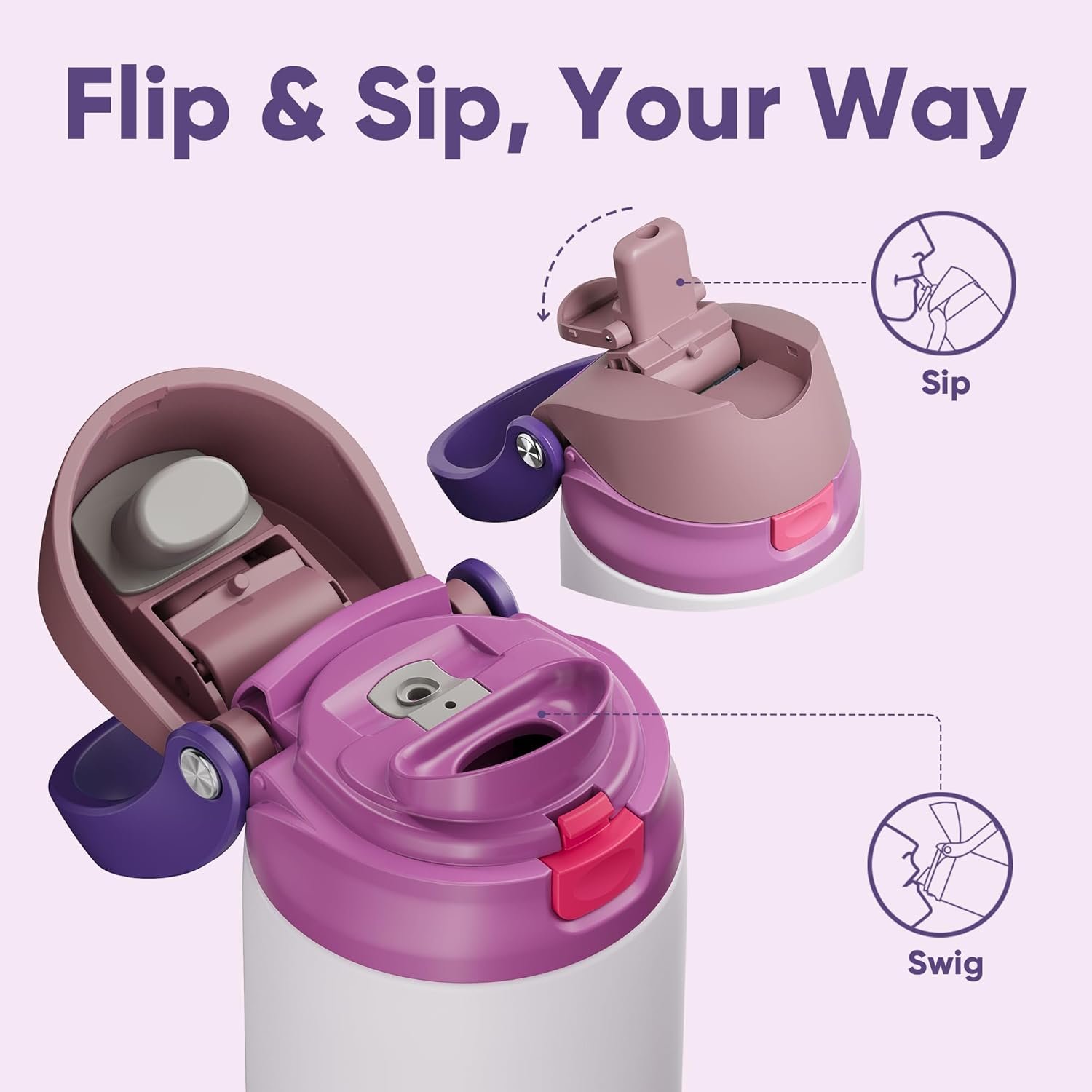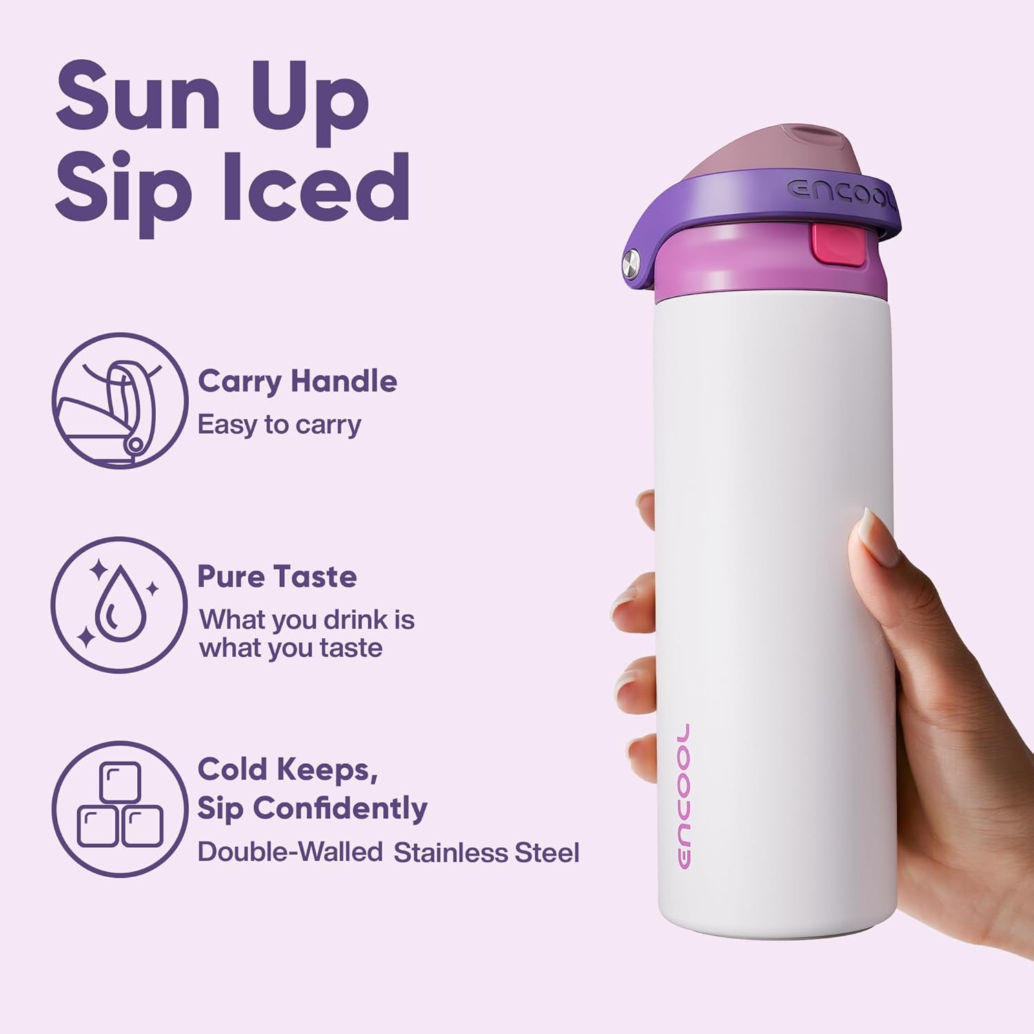 ENCOOL Leakproof Insulated Water Bottle with Straw Dual-Sip Water Bottle Bag-Safe Design for Work, Commute & Gym – Keeps Drinks Cold All Day, 24 oz, Purple Cabbage