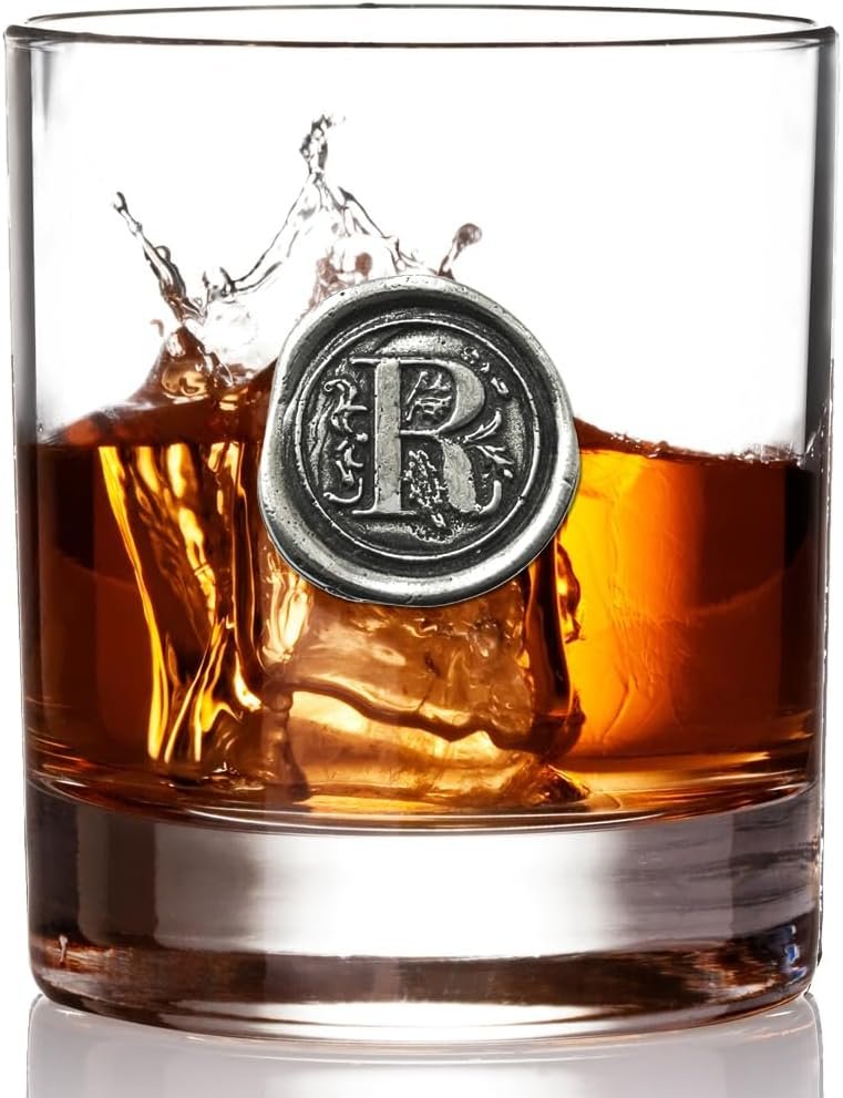 English Pewter Company 11oz Old Fashioned Whiskey Rocks Glass With Monogram Initial – Unique Gifts For Men – Personalized Gifts With Your Choice of Initial (R) MON118
