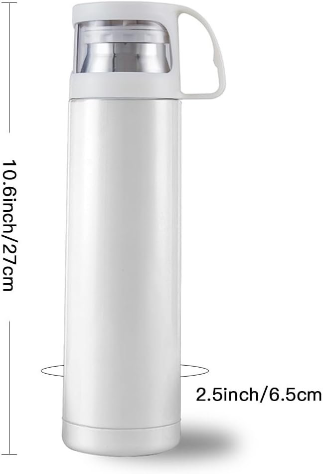 EXYLANOR Custom Stainless Steel Insulated Coffee Bottle Customized with Photo Logo Name Vacuum-Insulated Cups, Customized Gifts for Men Women, 17 Oz, Blank White