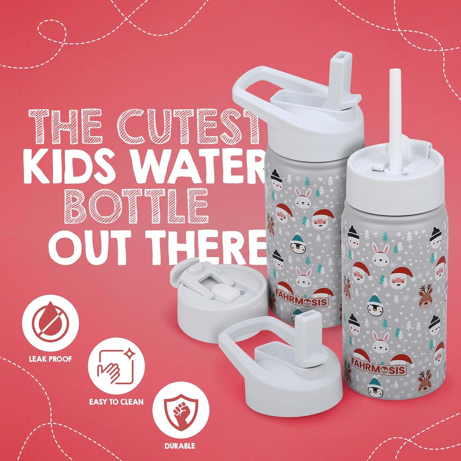 Premium Quality & Insulation: FAHRMOSIS kids insulated water bottle with straw is crafted from 18/10 stainless steel, ensuring it is entirely safe and odorless. Our kids metal water bottle are constructed from BPA-free, safe material featuring a double insulated water bottle design that enables it to maintain cold drinks for over 24 hours and hot beverages for more than 12 hours, ensuring your child enjoys water at the perfect temperature.
