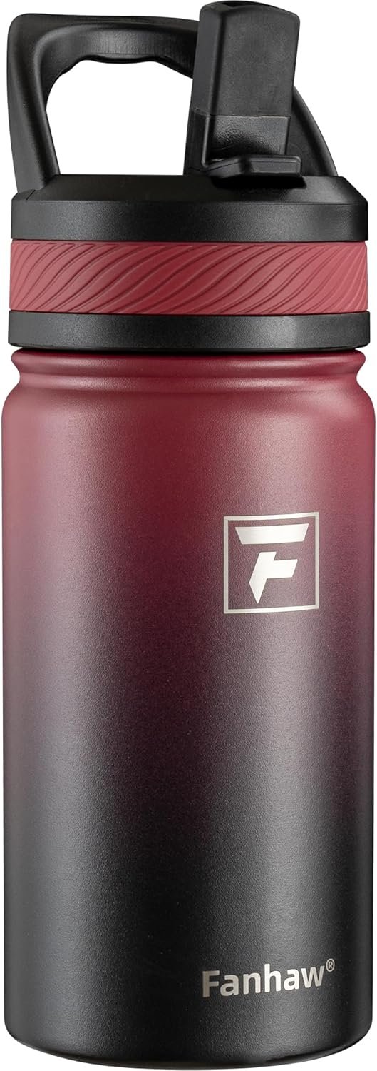 Fanhaw 14 Oz Kids Insulated Water Bottle with Straw Lid – Stainless Steel Double Wall Vacuum, Leak-Proof, BPA-Free Water Bottles for School Boys & Girls(Red Black)
