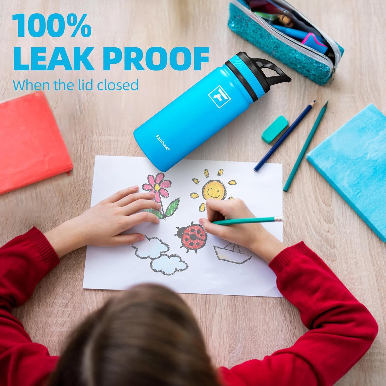 Kids Insulated Water Bottle – Fanhaw kids water bottle is made from premium 18/8 stainless steel, rust-resistant and BPA-free, ensuring safe hydration. The durable 304 stainless steel is free from harmful substances, providing lasting safety for your child.
