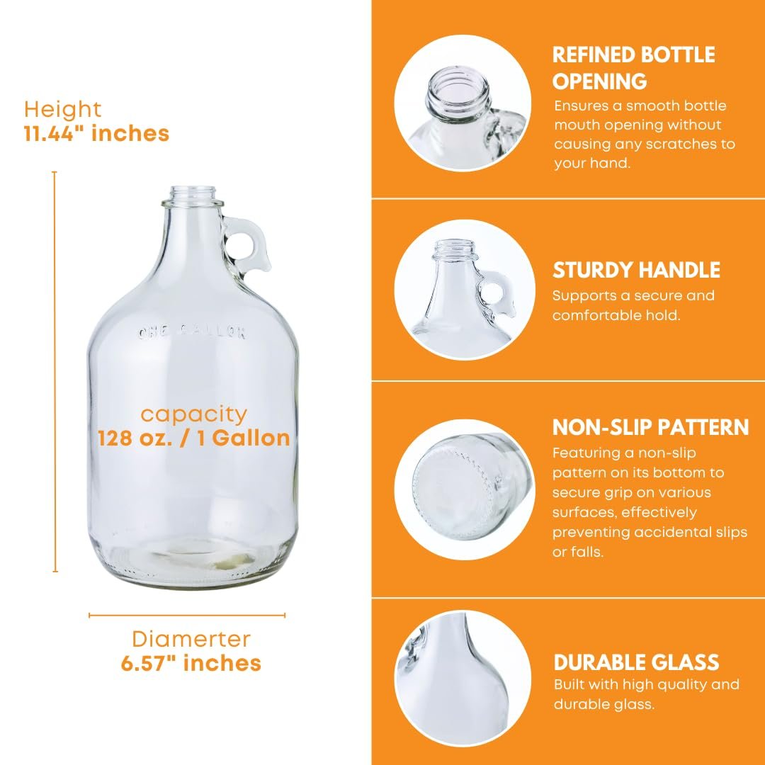 [TRANSPARENT FOR EASY MONITORING] The clear glass allows you to easily monitor the contents, whether you’re fermenting, brewing, or simply storing liquids. So you’ll always know when your 1 gallon glass jug needs a refill.