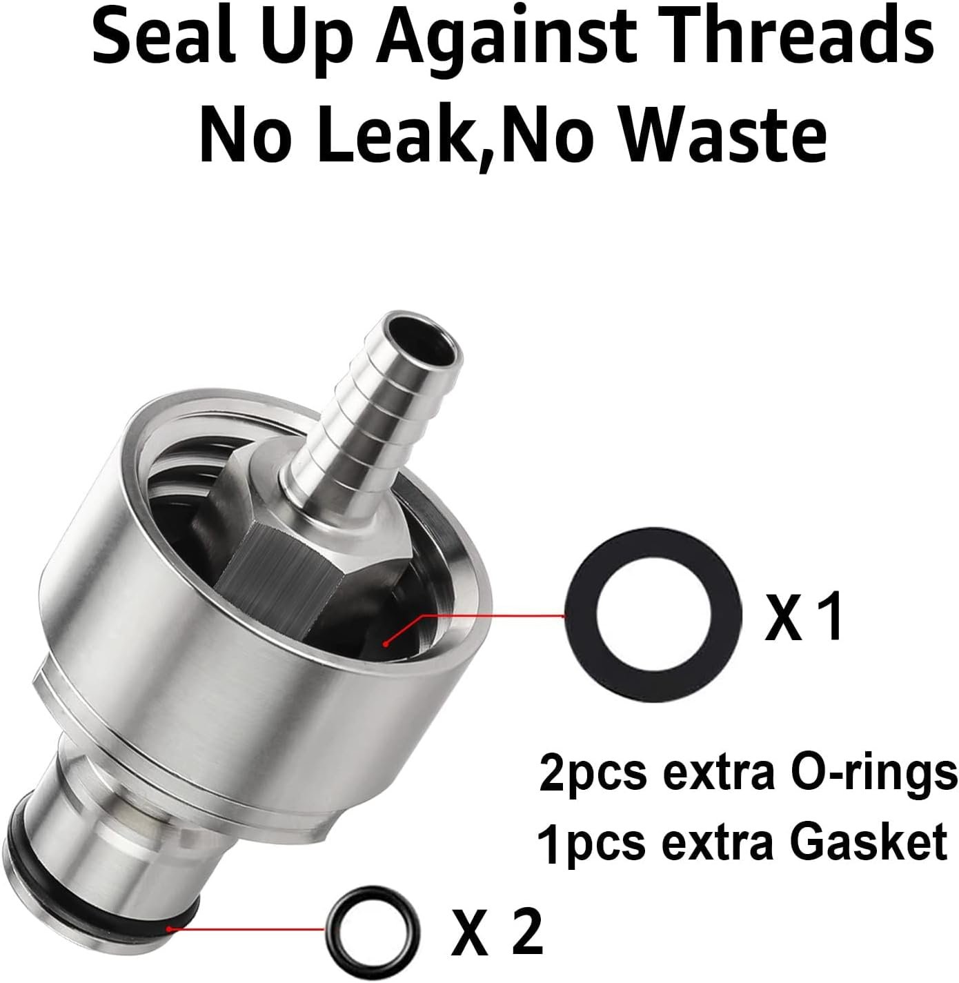 Food Safe Gasket/ No Leaks: We use premium material for the gaskets and o-rings. High-resilient food safe rubber gaskets seal against the threads and give you no leak connections! We updated our package with 2 more O-rings and 1 more gasket for replacement