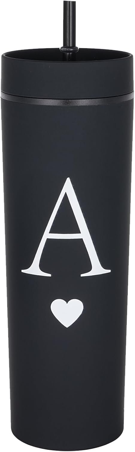 Forest Kiss Letter A Personalized Initial Gifts for Women Men 16oz Double Wall Food-grade Plastic Skinny Tumbler Monogrammed Matte Slim Cup Wedding Graduation Birthday Present (A)