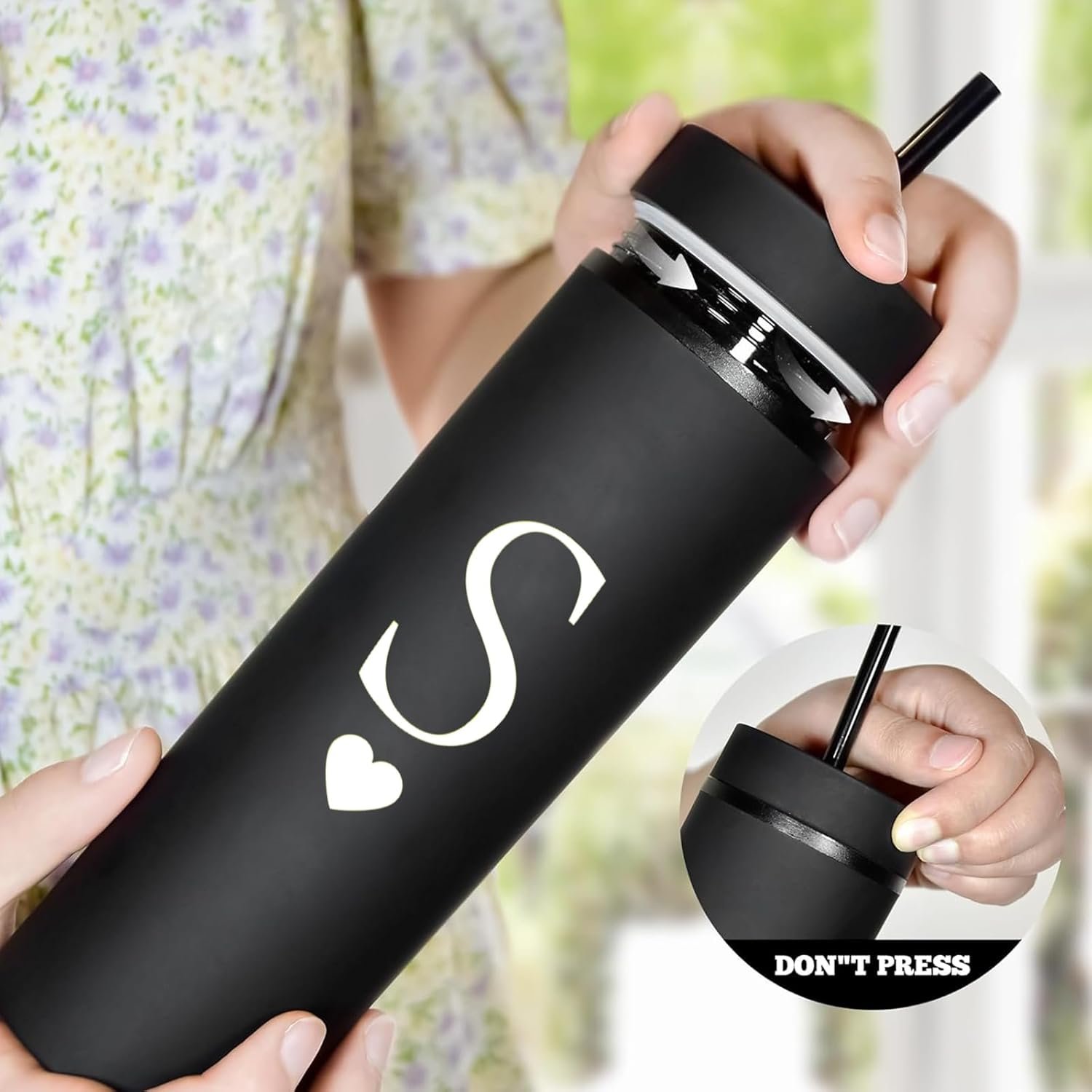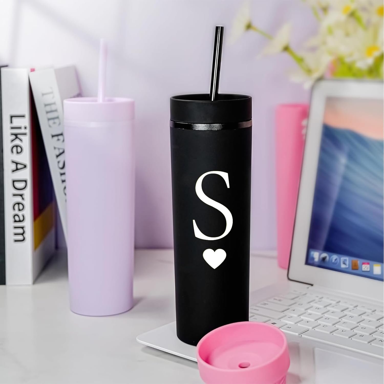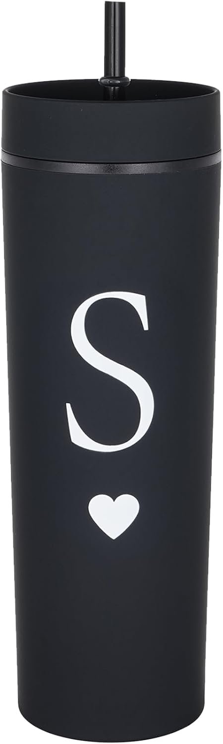 Forest Kiss Letter S Personalized Initial Gifts for Women Men 16oz Double Wall Food-grade Plastic Skinny Tumbler Monogrammed Matte Slim Cup Wedding Graduation Birthday Present (S)