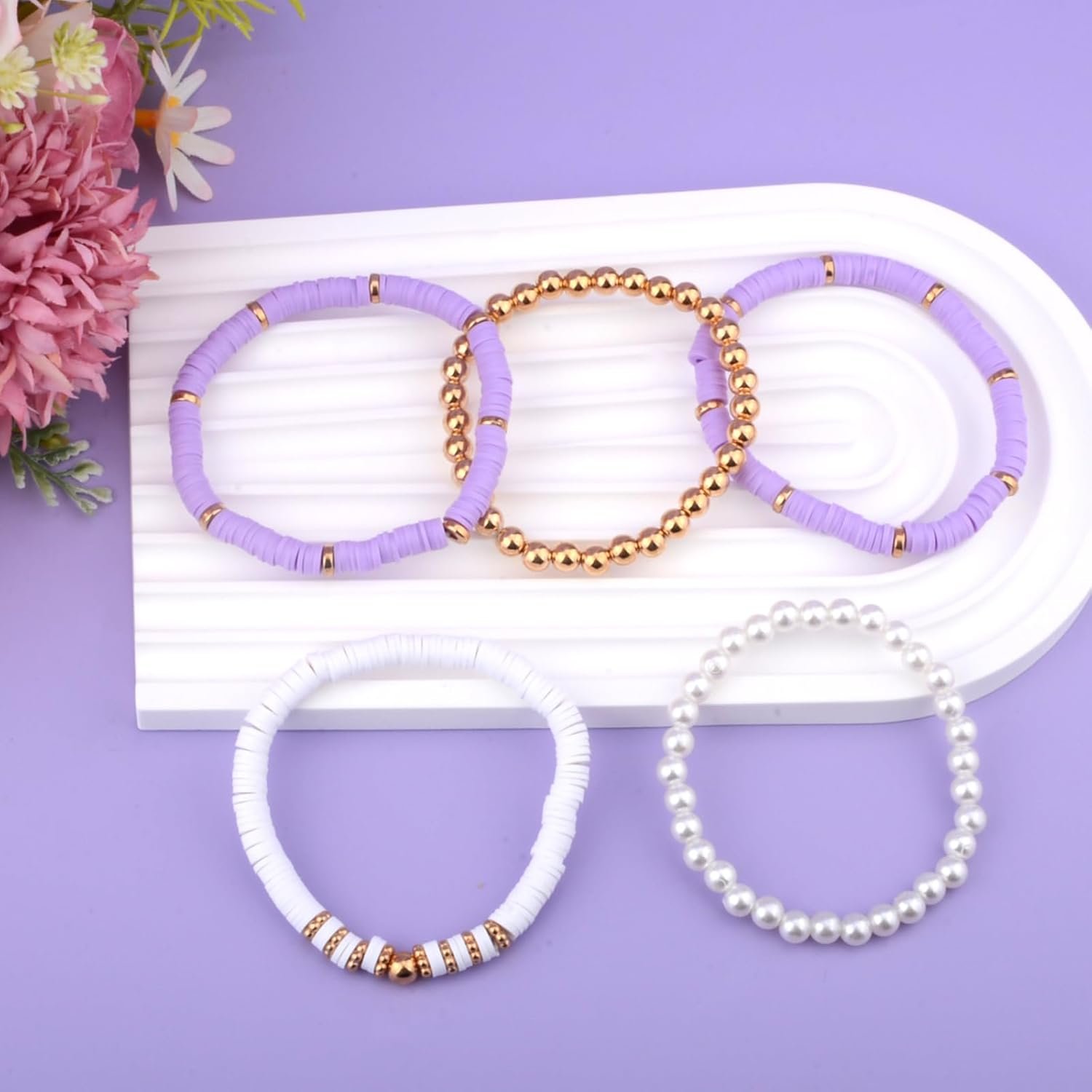 Bracelets are available in gold, white and purple, the 3 colours are very girly together, and none of the 5 bracelets have a repetitive design, giving us a wide range of choices that look really great together!