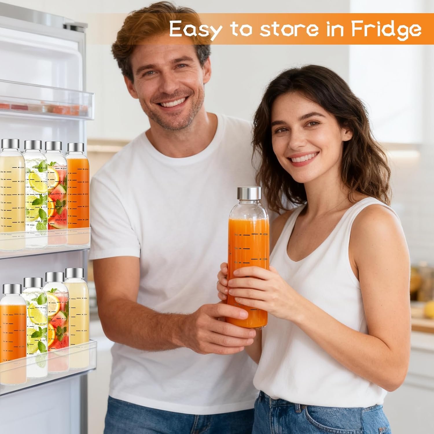 Precise Measurement & Convenience:These glass juice bottles feature clear measurement marks, making it easy to track your daily intake of water, juice, or healthy beverages for a balanced lifestyle