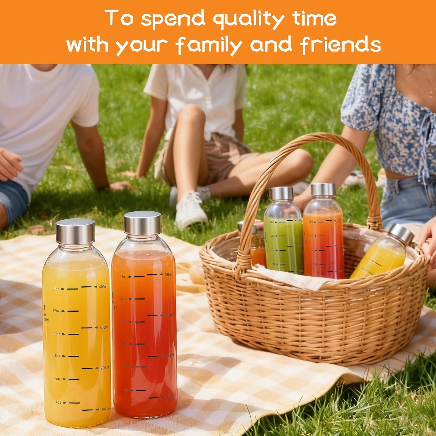 Family and Outdoor Friendly:Weasland glass juice bottles are free from harmful chemicals and support a sustainable, zero-waste lifestyle,Whether at home, work, or outdoors, these glass juice bottles with lids are perfect for families, fitness enthusiasts, and anyone pursuing a healthy and active lifestyle