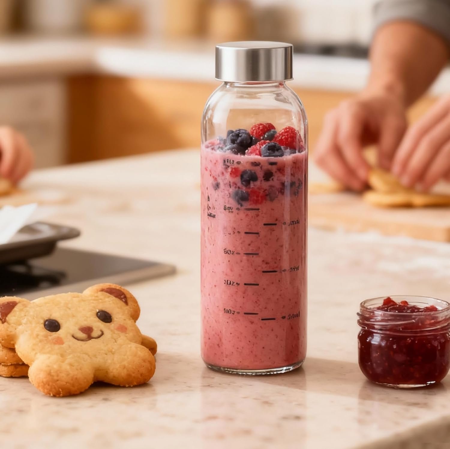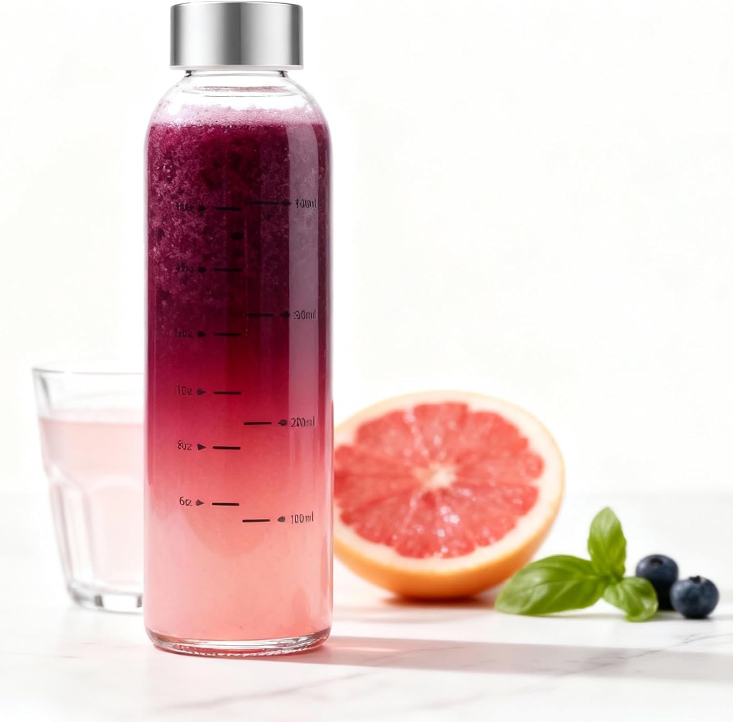 Precise Measurement & Convenience:These glass juice bottles feature clear measurement marks, making it easy to track your daily intake of water, juice, or healthy beverages for a balanced lifestyle