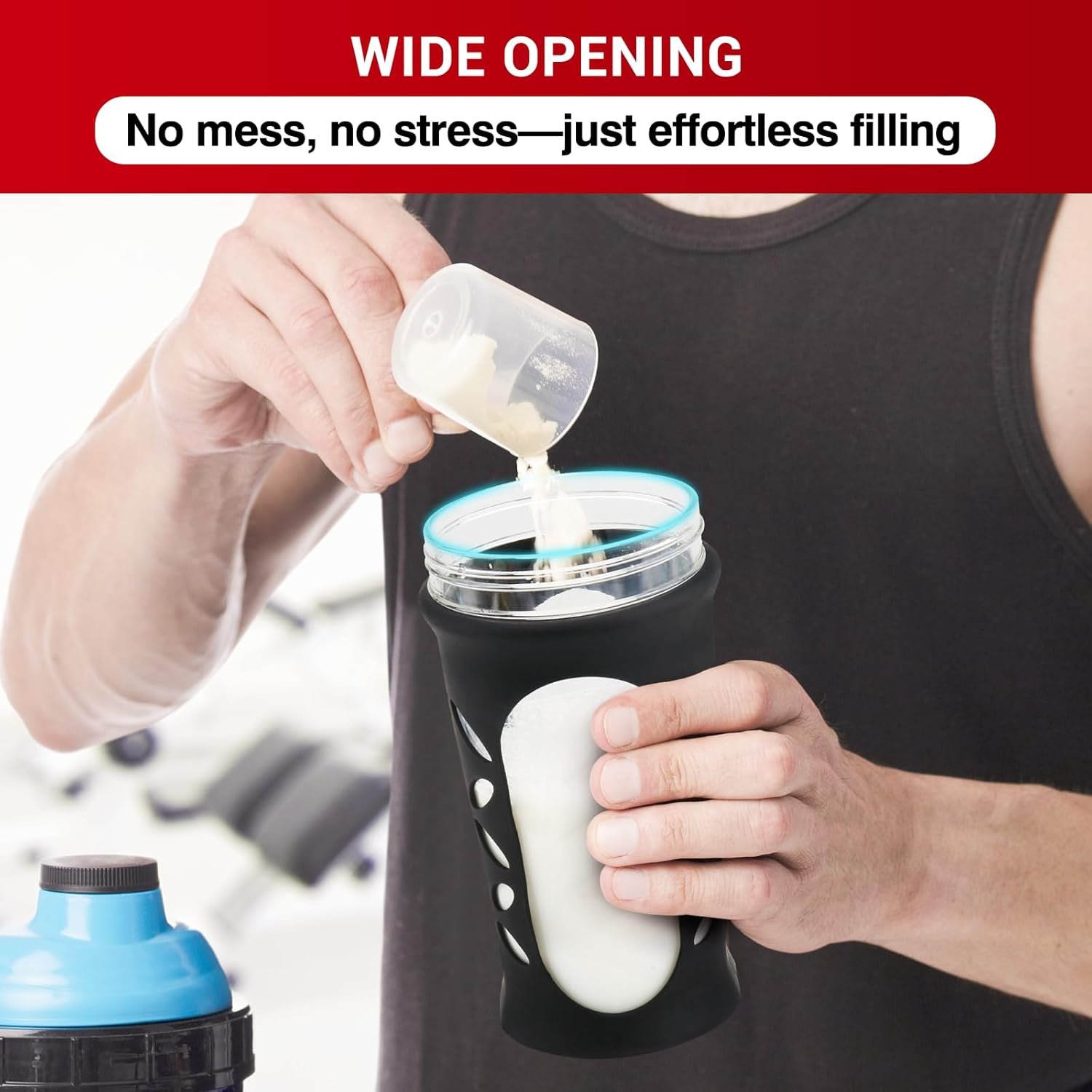 Experience smooth, clump-free shakes with our protein shaker bottle glass, designed for athletes, gym-goers, and fitness enthusiasts. This pre workout shaker, 20 oz shaker bottle, or workout bottle for men features an advanced protein bottle blender mechanism for perfectly blended protein drinks. The shaker bottle for protein shakes, pre workout bottle shaker, or protein mixer bottle comes with a wide opening for mess-free filling, while its leak-proof construction ensures worry-free portability. Whether you’re using it as a smoothie shaker bottle, protein powder shaker, or self mixing shaker bottle, this versatile design keeps every sip fresh and consistent.