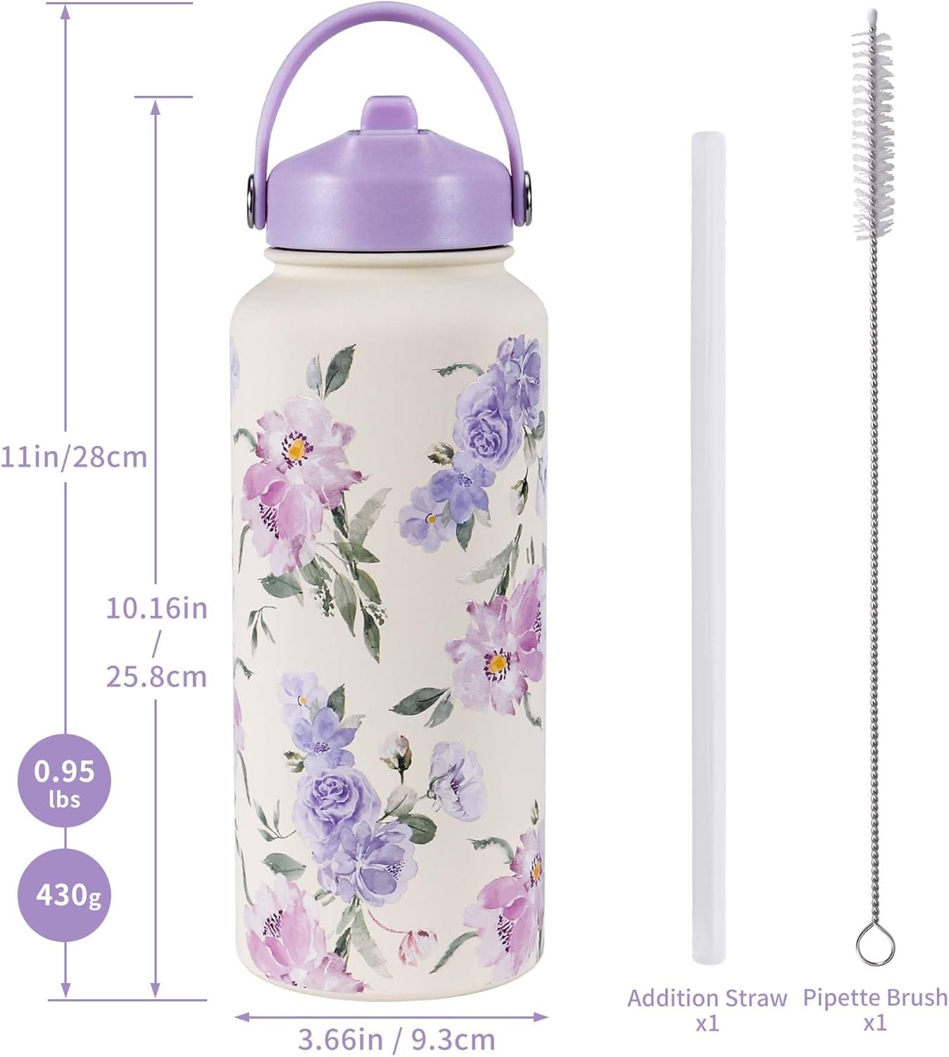 Beautiful Floral Design: Featuring stunning, hand-drawn floral patterns created by talented female designers, this water bottle not only makes hydration enjoyable but also highlights your unique personality and style. The UV printing process ensures vibrant, diverse colors and provides scratch resistance, while being environmentally friendly