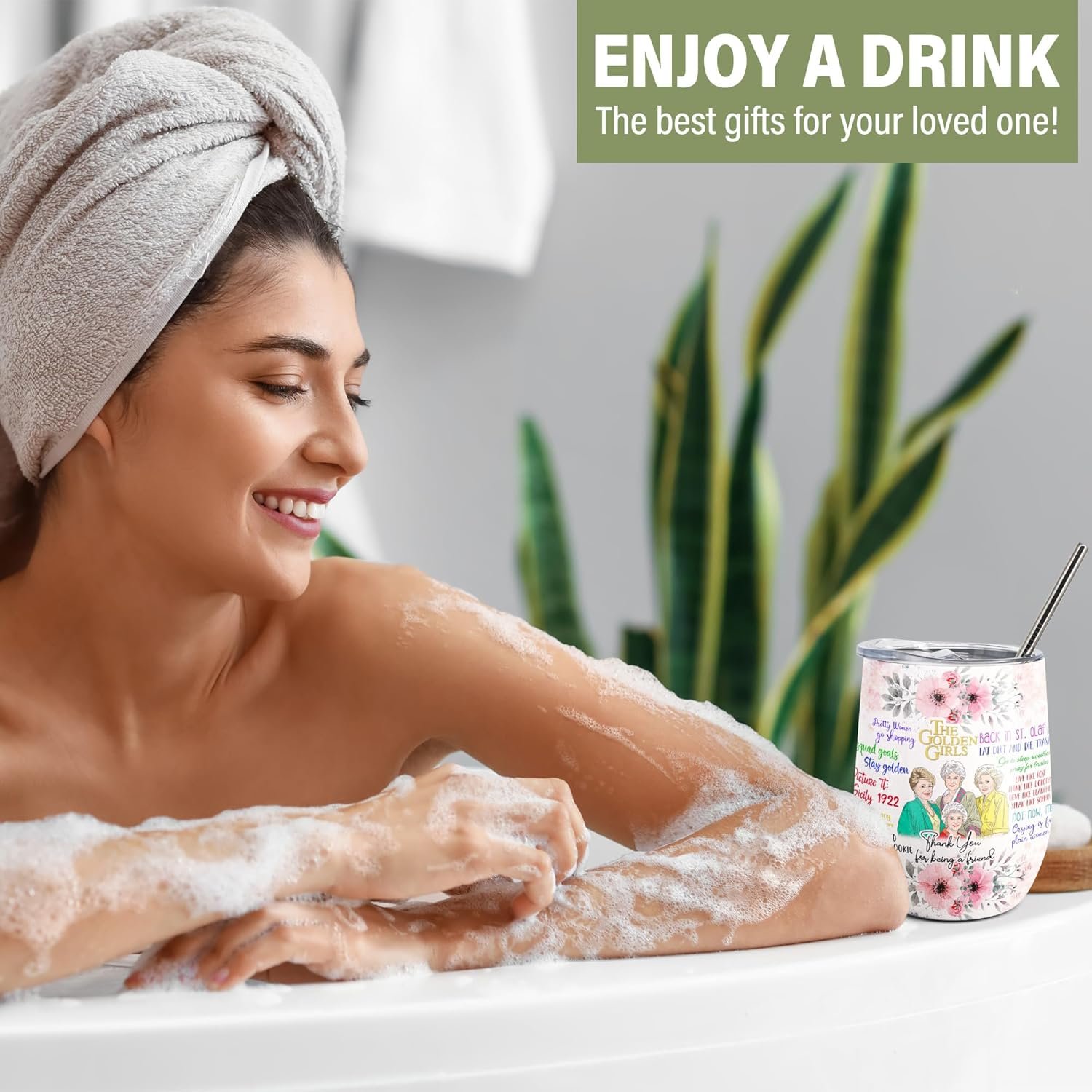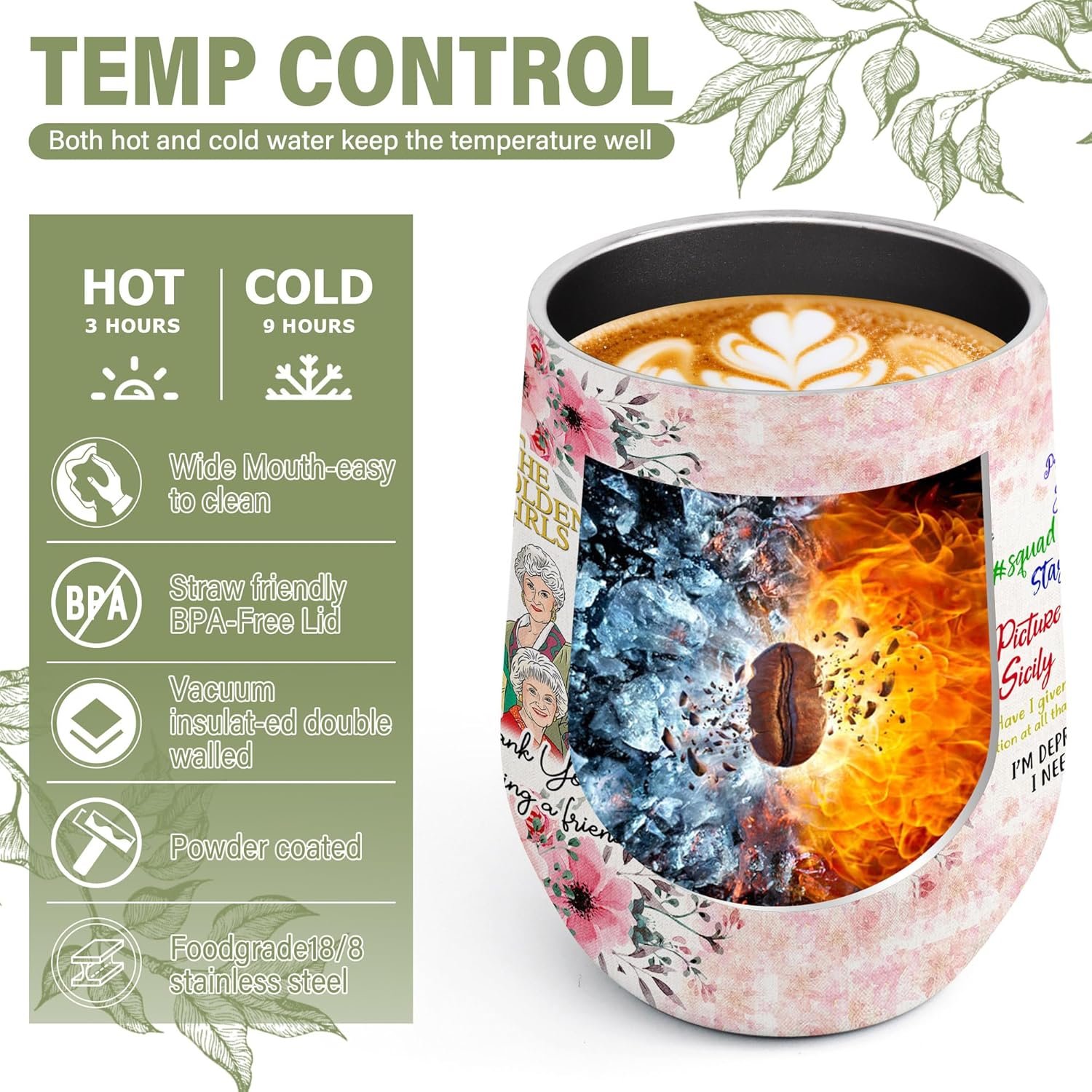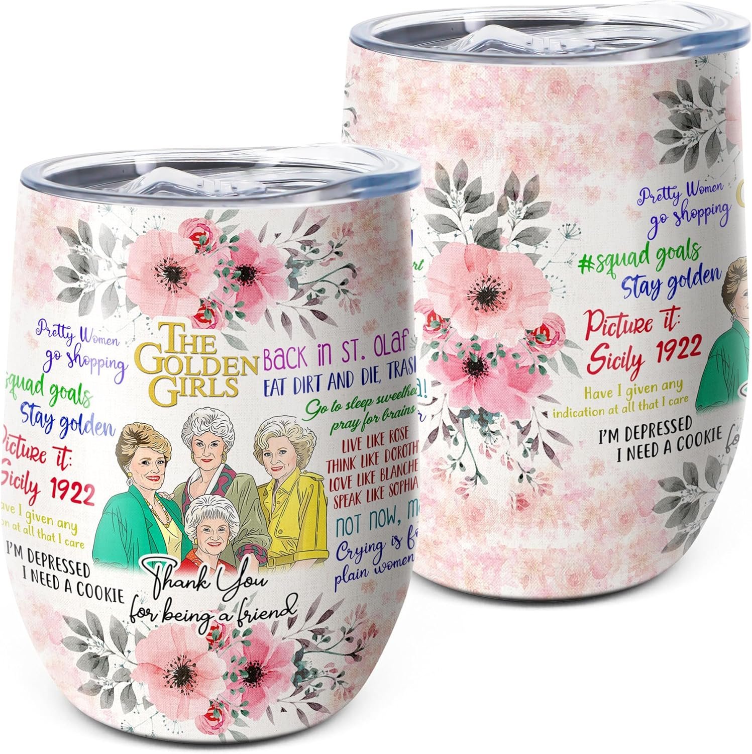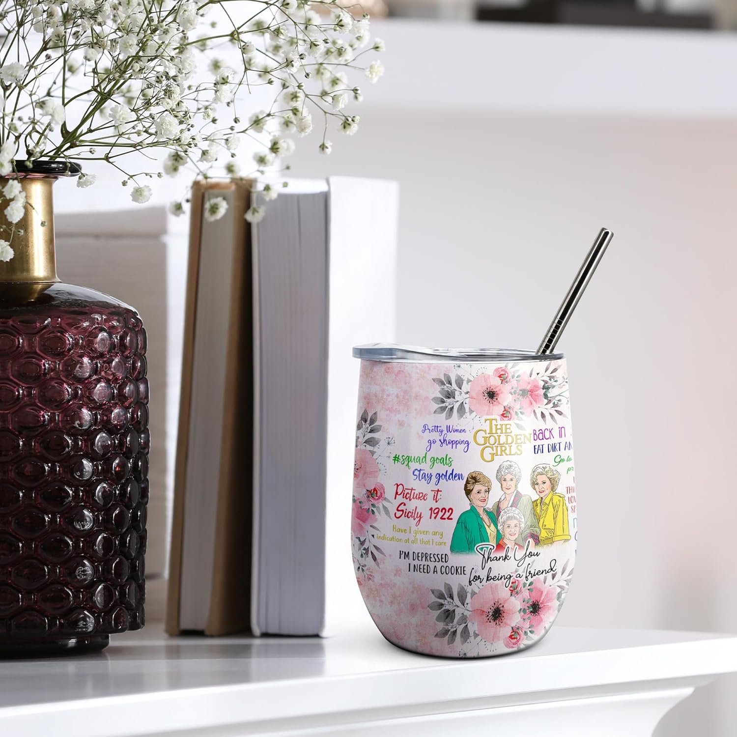 Golden Girls Gifts 12 OZ Insulated Wine Tumbler Cup with Lid,Vacuum Stainless Steel Coffee Mug Stemless Cup,Funny Birthday Gifts Idea for Friends Women Girl (White)