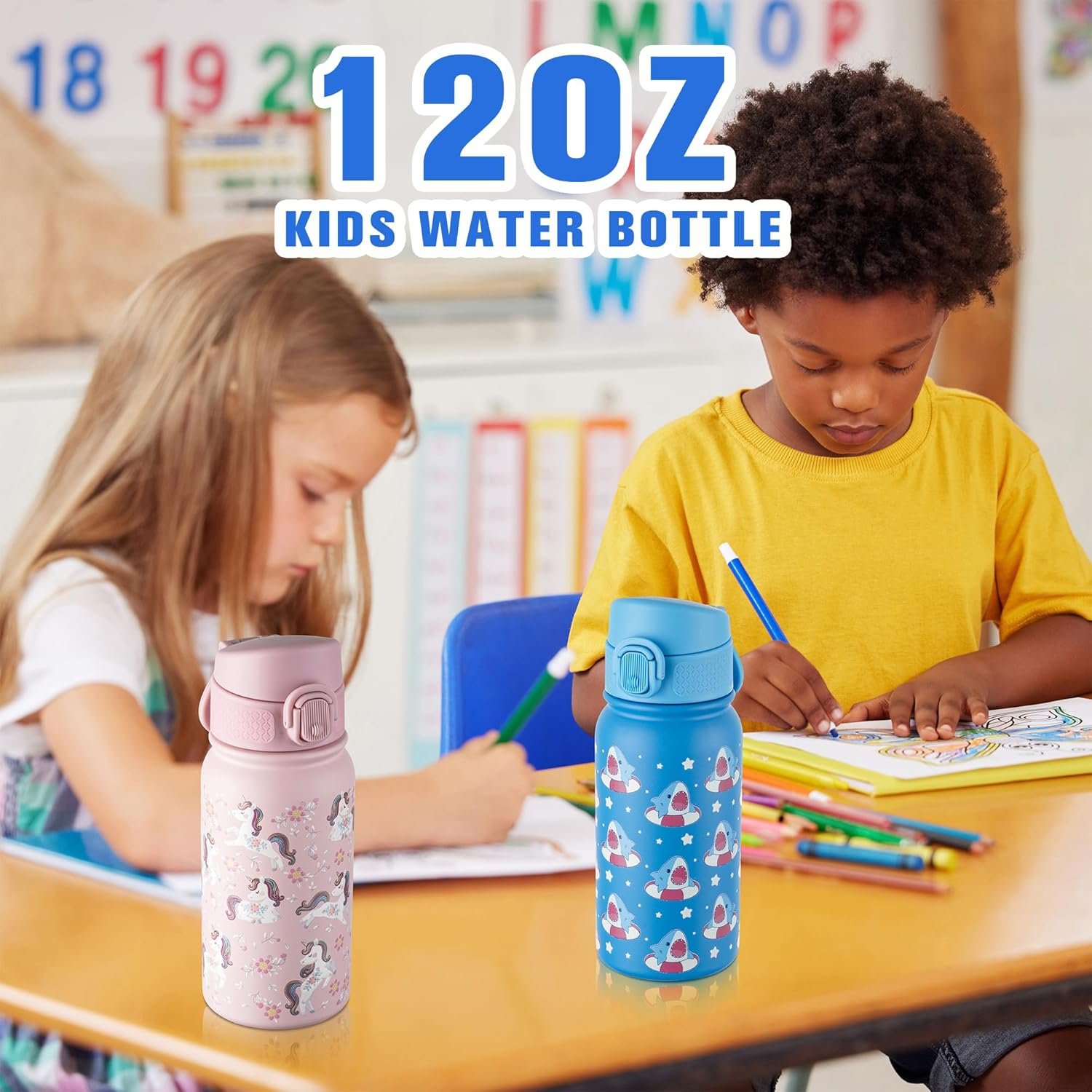 INSULATED WATER BOTTLE – Our Stainless Steel Insulated Water Bottle is Designed for Children Keeps Liquids hot for 12 Hours cold for 24 hours. Our insulated Water Bottles are made of 304 Stainless Steel are BPA free odor free