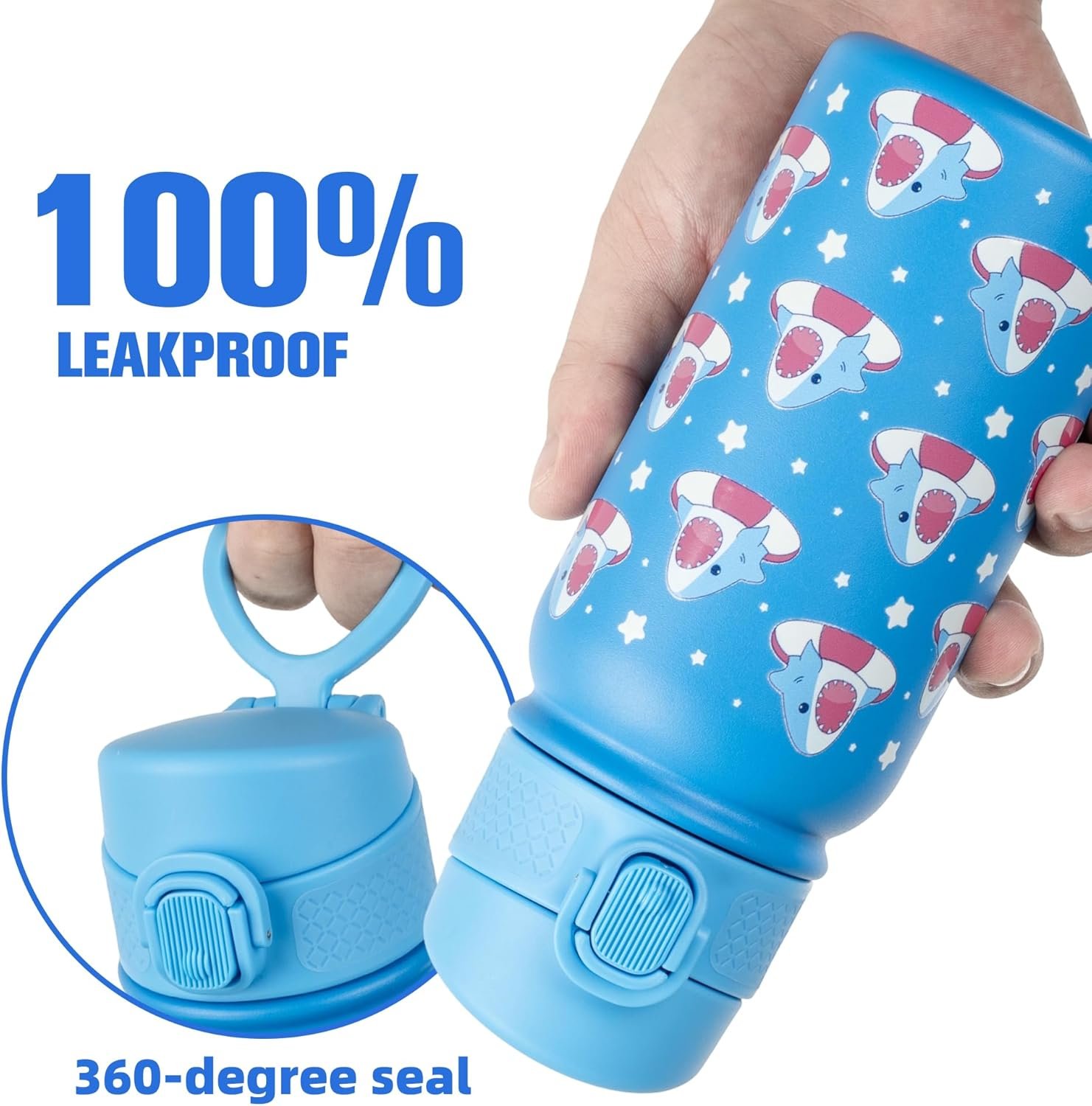 GOPPUS 12 oz Kids Water Bottle – Stainless Steel Insulated Water Bottle, BPA Free, Odorless, Durable and Reusable for School, Sports and Outdoor Activities(blue shark)