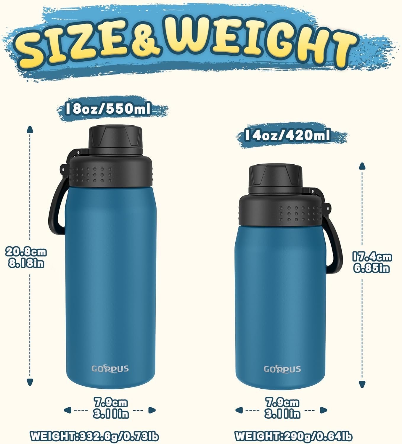 GOPPUS 15 Oz Kids Insulated Water Bottle with Spout Lid, Stainless Steel Double Wall Vacuum Cup, Leakproof, BPA Free, Suitable for Boys and Girls(Navy Blue)