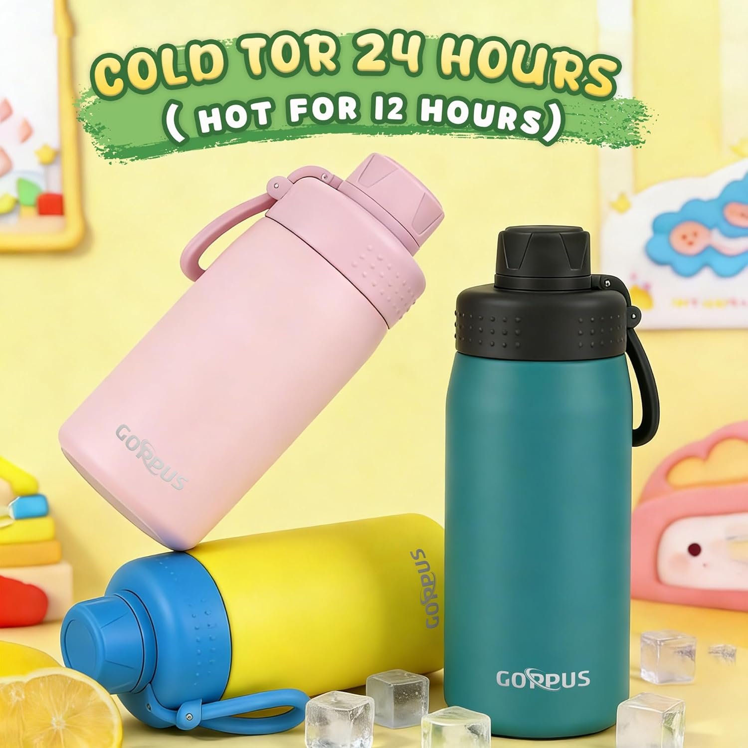 All-Day Coolness: This kids water bottle keeps drinks cold for 24 hours. Its double-walled stainless steel construction is BPA-free for safety, ensuring every sip stays fresh and refreshing.