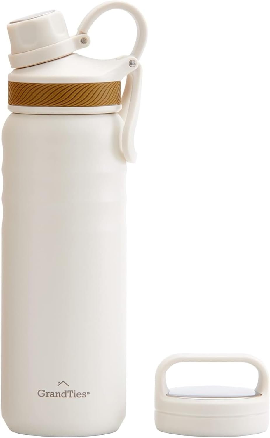 GRANDTIES 2 Lids Sports Stainless Steel Water Bottles – Wide Mouth Vacuum Insulated Reusable Leak Proof BPA-Free Travel Metal Canteen, Thermal Bottles for Men Women Gym (Ivory White 24 oz)