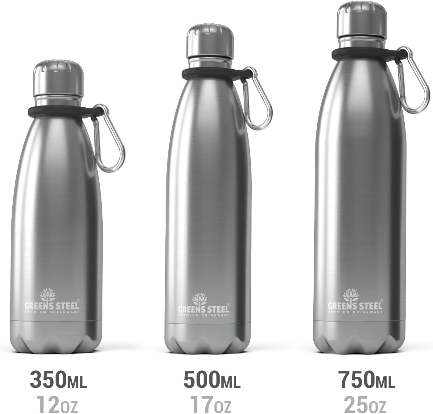 Greens Steel Stainless Steel Water Bottle – 25 oz, Steel | Vacuum Insulated Double Wall with Screw Lid/Leak Proof | Thermal Travel Sports Canteen Coffee Flask