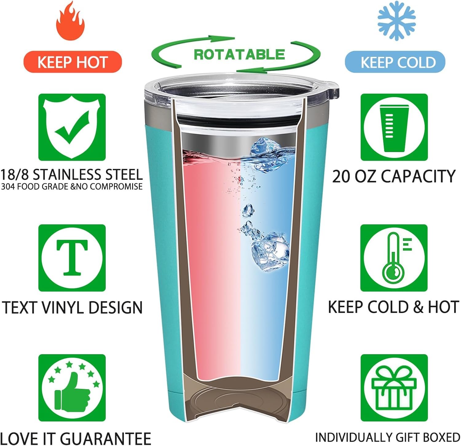 A Complete Tumbler Gift Set: This double wall insulation tumbler can keep your drinks cold or hot for a long time, it is great for coffee, soda, cola, juice, and more. The package also includes 1 tumbler sliding lid, a unique gift box
