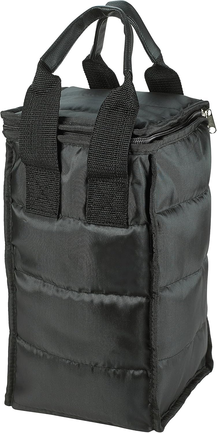 Durable zipper provides dependable closure; two handles make the wine bag easy to carry.