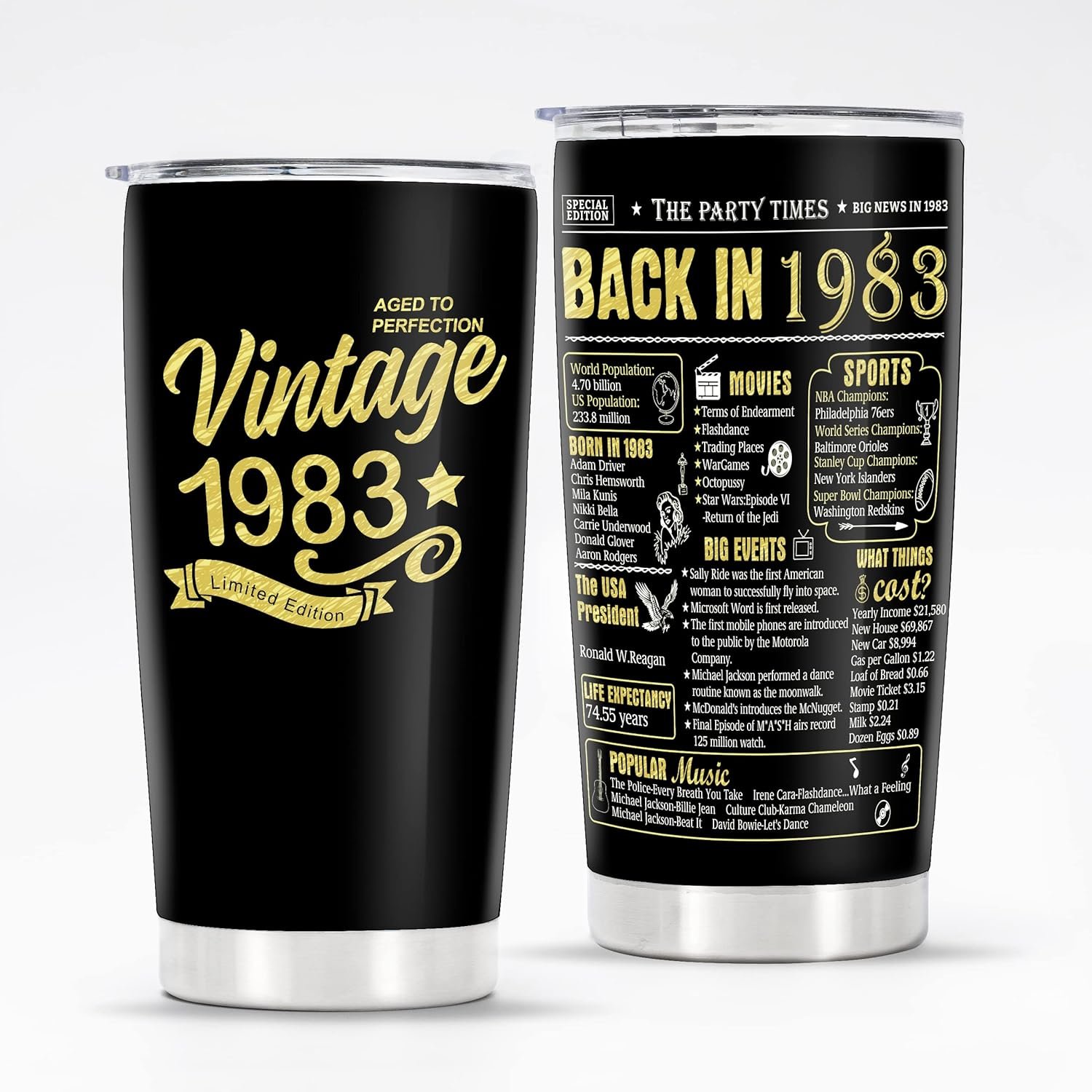 Happy 43th Birthday Tumblers Gifts for Men Women, Back in 1983 Stainless Steel Tumblers Gifts, 1983 43 Years Old Birthday Gift For Wife Husband Mom Dad