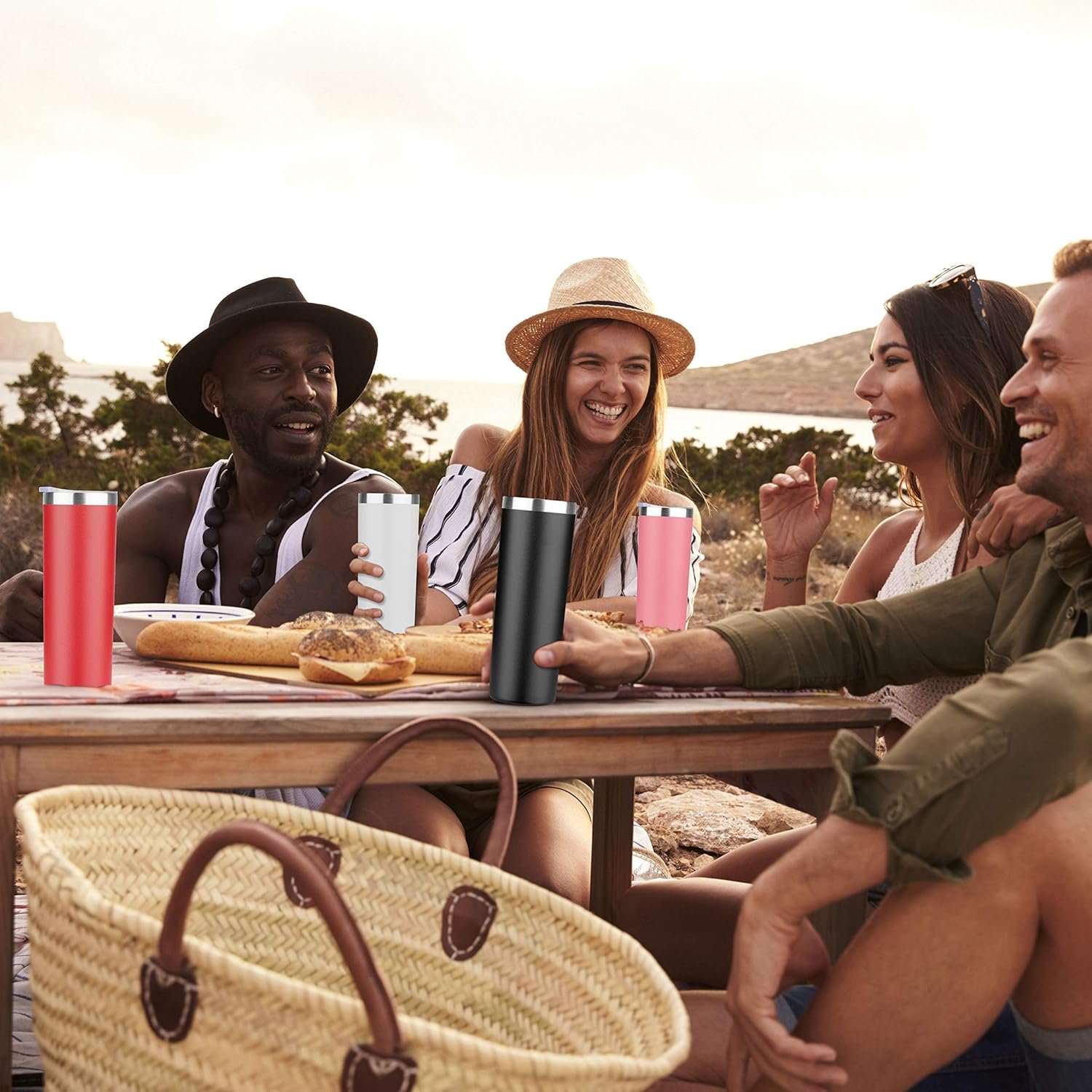 Sweat Free-Tired of holding sweat cup while enjoy your morning coffee and drinks?Our 20oz Skinny Tumblers are finished with powder coated technique with comfortable texture,easy to hold and carry.BPA-Free-Worried about the safety and taste while drinking water?Our 20oz Straight Tumblers are BPA free and made of newly food grade materials to be non-toxic and non smelly.Premium Materials-Needing the durability of your drinking ware?Our 20oz Slim Tumblers are made of 18/8 SUS 304 stainless steel,which is hard to broke for a long period of time,durable enough for daily use.Great Insulation-Want to enjoy the cold and hot drinks at any time and anywhere?Our 20oz Stainless Steel Tumblers can keep cold drinks cold for 9 plus hours and hot drinks hot for 3 plus hours.