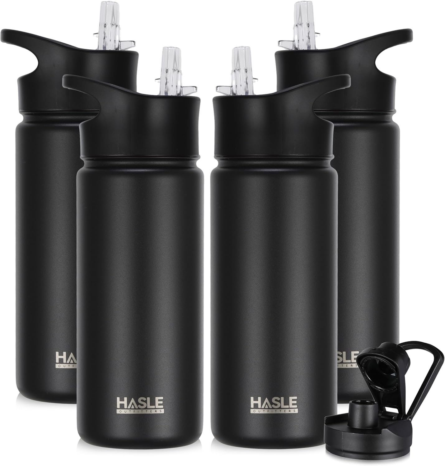 HASLE OUTFITTERS Insulated Water Bottle 16 oz Double Wall Vacuum Stainless Steel Water Bottle Leak Proof for School Wide Mouth with Straw Lid & Spout Lid Keeps Cold and Hot(Black,4pack)