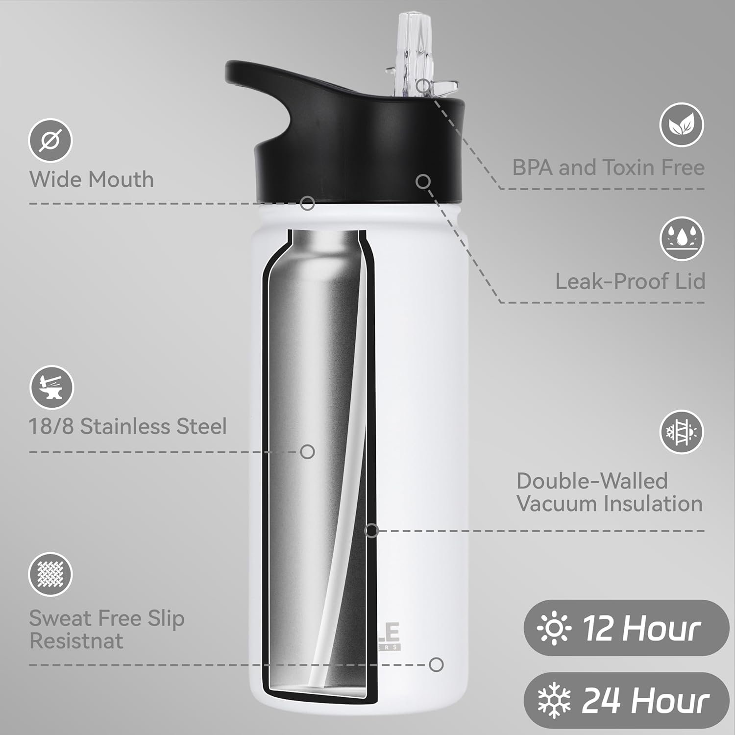 DOUBLE WALL VACUUM INSULATIONSPOUT LID & STRAW LIDSTAY REFRESH THROUGHOUT THE DAY