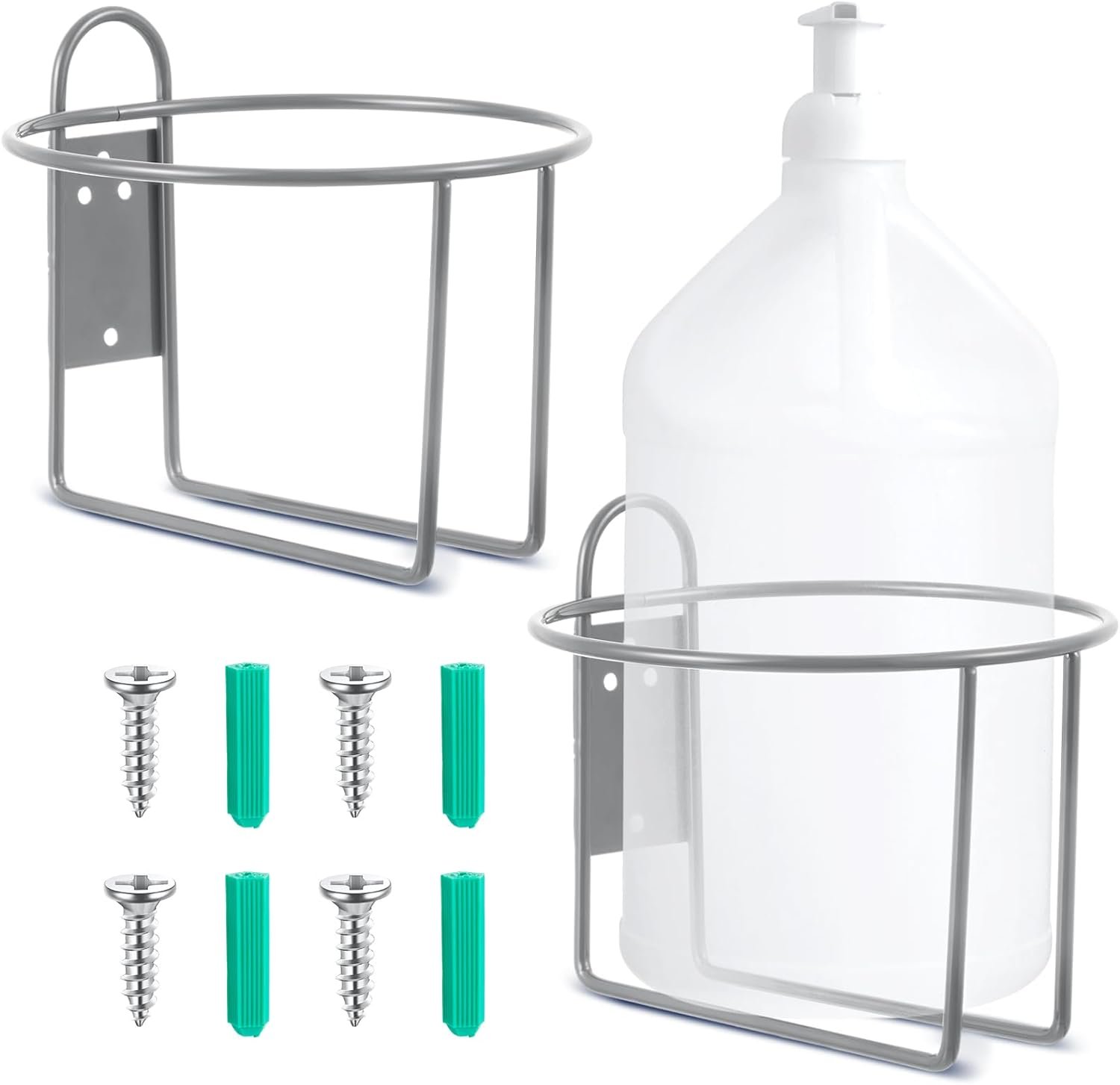 Hicarer 2 Pcs One Gallon Jug Storage Rack Wall Mounted Heavy Duty Steel Wall Rack for 1 Gallon Bottle Round Water Jug Holder with Hardware Hand Sanitizer 6-3/4″ W x 5″ H x 6-1/2″ D (Gray)