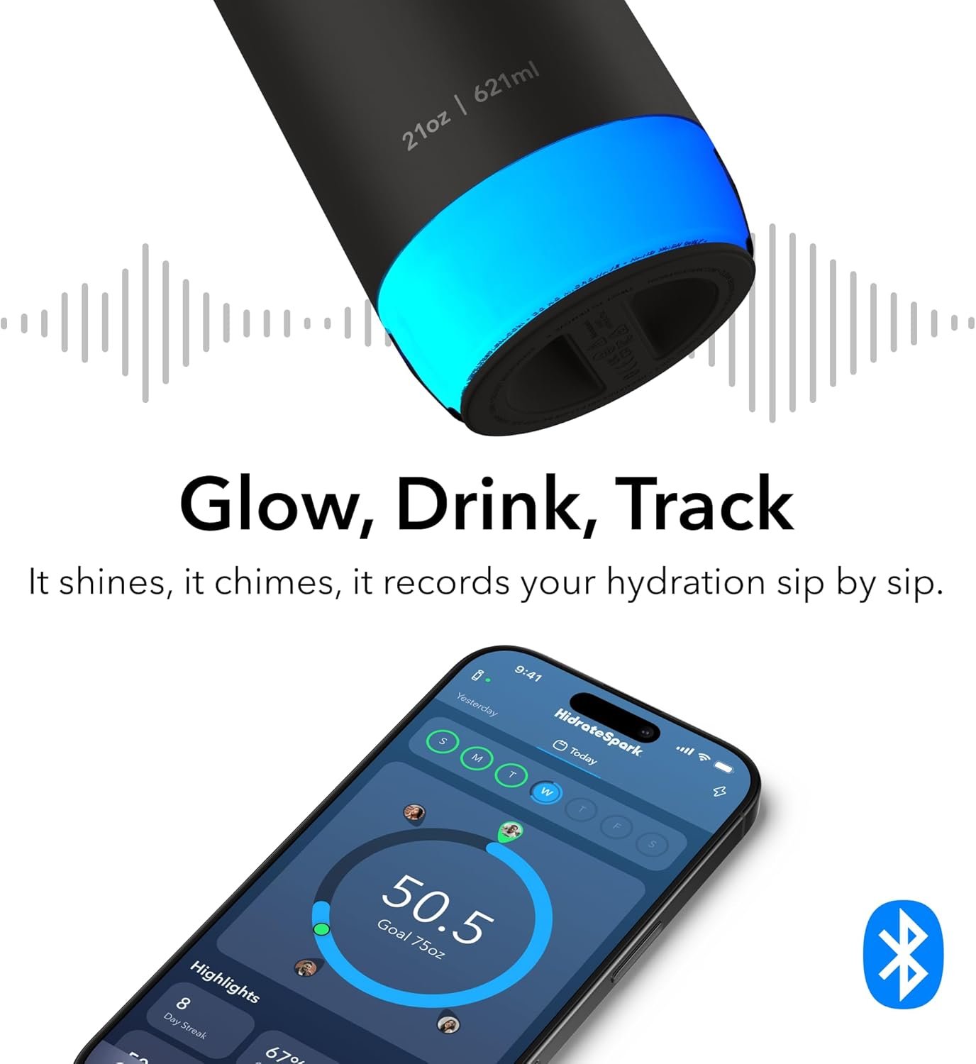 BLUETOOTH SYNC + FREE APP INTEGRATION – Connect via Bluetooth to the free HidrateSpark app. Track your progress, receive personalized hydration goals, view history, join challenges, compete with friends, earn trophies, manage multiple bottles from one app, and hit your hydration goals.