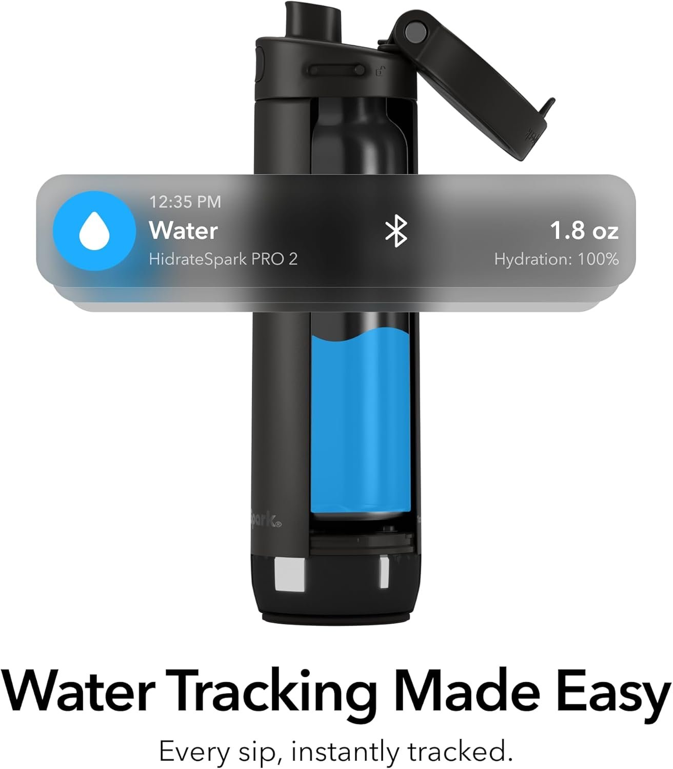 Hidrate Spark PRO 2 – Smart Bottle with Drink Reminders & Water Tracking, Great Holiday Gift for New Year Resolutions – 21oz – Syncs with Apple Health, Fitbit, Smart Rings & Watches – Straw Black