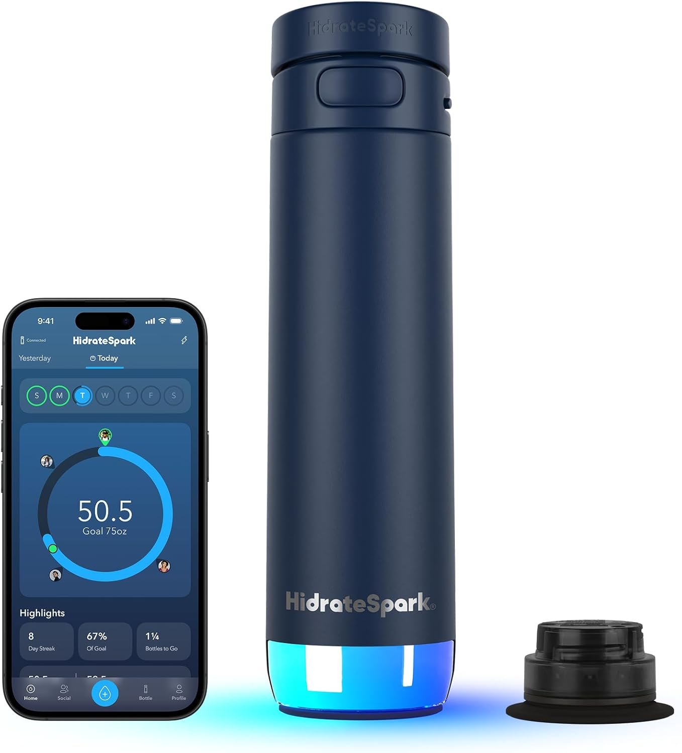 Hidrate Spark PRO 2 – Smart Bottle with Drink Reminders & Water Tracking, Great Holiday Gift for New Year Resolutions – 21oz – Syncs with Apple Health, Fitbit, Smart Rings & Watches – Straw Navy